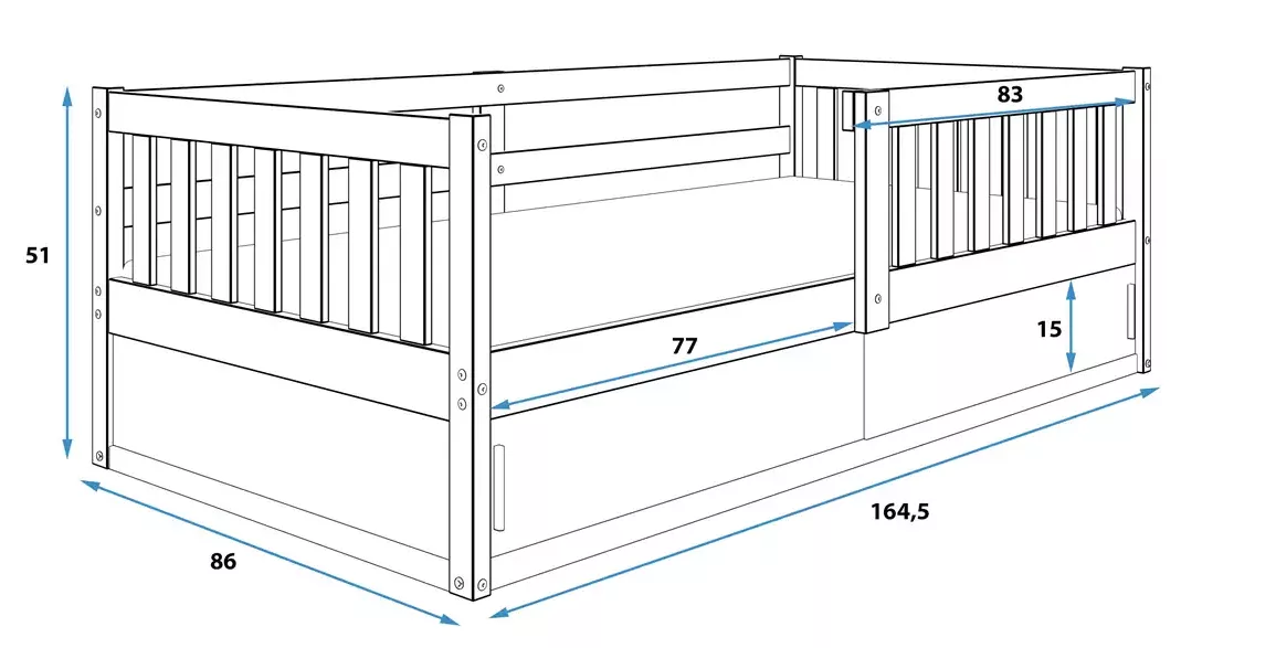 Dětská postel s dvířky AGAPI 80x160 se hodí do všech dětských pokojů. Základem konstrukce postele je masivní rám z borovicového dřeva, který posteli dodává bezpečnou stabilitu. Postel je ošetřena zdravotně nezávadným lakem na vodní bázi.