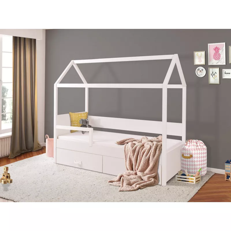 Dětská postel domeček se zábranou 90x200 SONTRA 2 - bílá