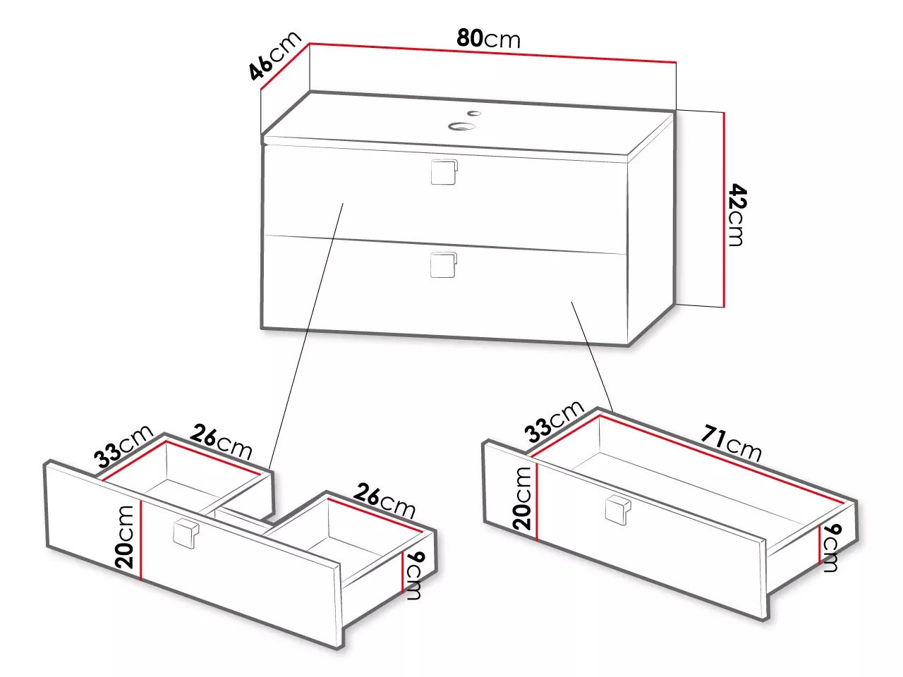- umyvadlová skříňka: 80/42/46 cm