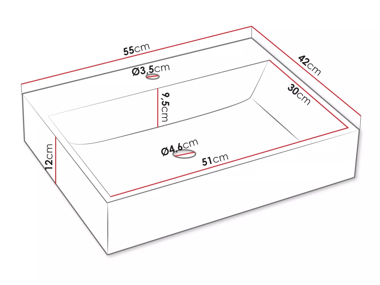 - umyvadlo na desku: 55/12/42 cm
