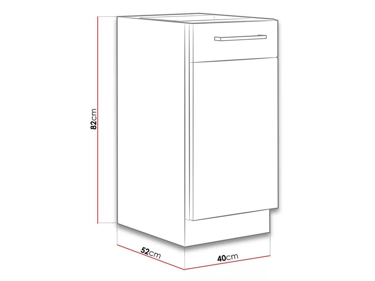 Dolní jednodveřová kuchyňská skříňka poskytne nejen skvělé místo pro uložení kuchyňských doplňků, ale poslouží i jako místo pro drobné domácí spotřebiče, nádobí nebo zásoby potravin. Skříňka je vybavena systémem tichého zavírání, který zabrání zabouchnutí dvířek. Dvířka jsou navíc univerzální, což znamená, že si je můžete namontovat na pravou či levou stranu podle svých potřeb.