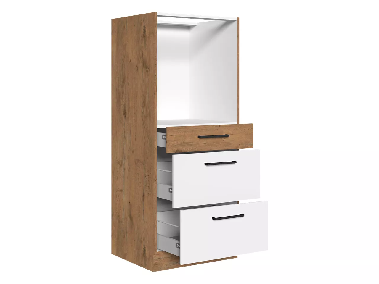 Kuchyňská skříňka ZHILAN určená pro vestavnou troubu nabízí perfektní kombinaci stylu a funkčnosti. Vestavná část je navržena pro bezpečné a elegantní umístění trouby, zatímco 3 šuplíky různých výšek poskytují praktický úložný prostor na nádobí nebo kuchyňské potřeby. Skříňka dokonale zapadne do každé moderní kuchyně a usnadní její uspořádání.