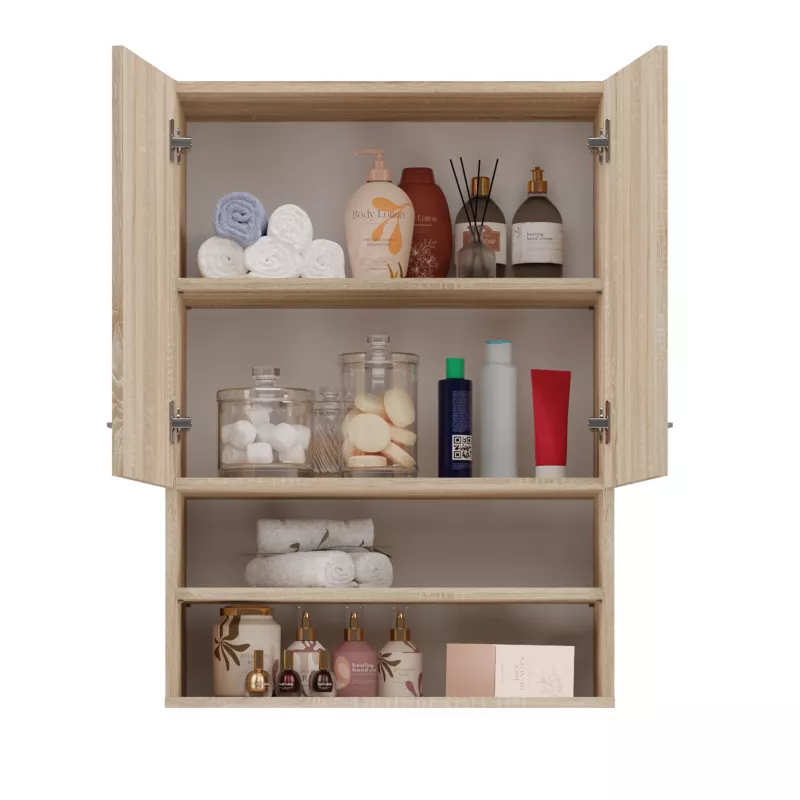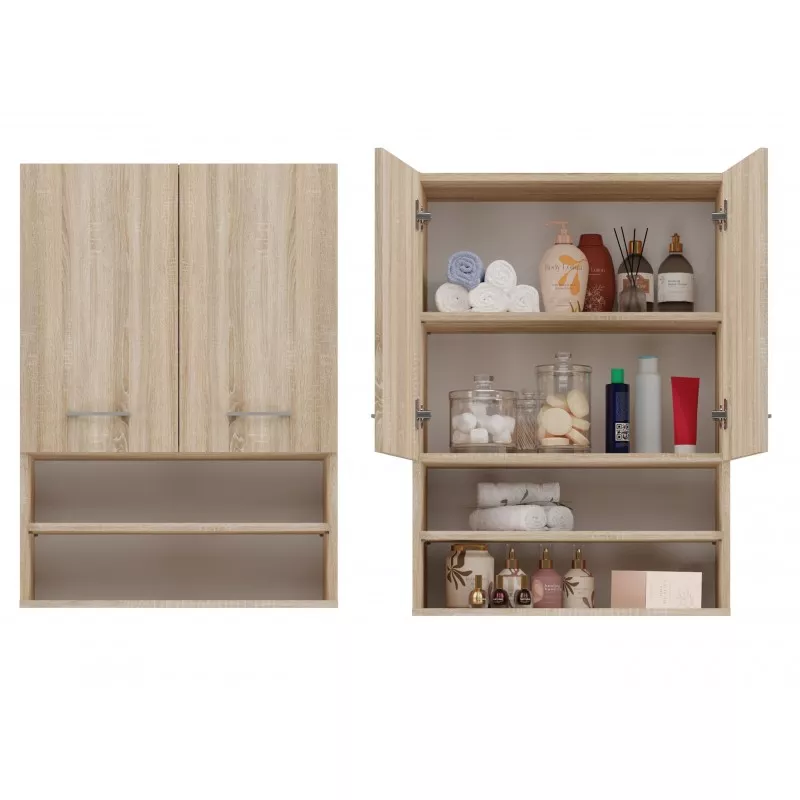 Horní koupelnová skříňka s poličkami MARGO - dub sonoma