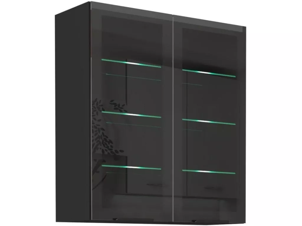 Vysoká prosklená skříňka SAJU - šířka 80 cm, černá