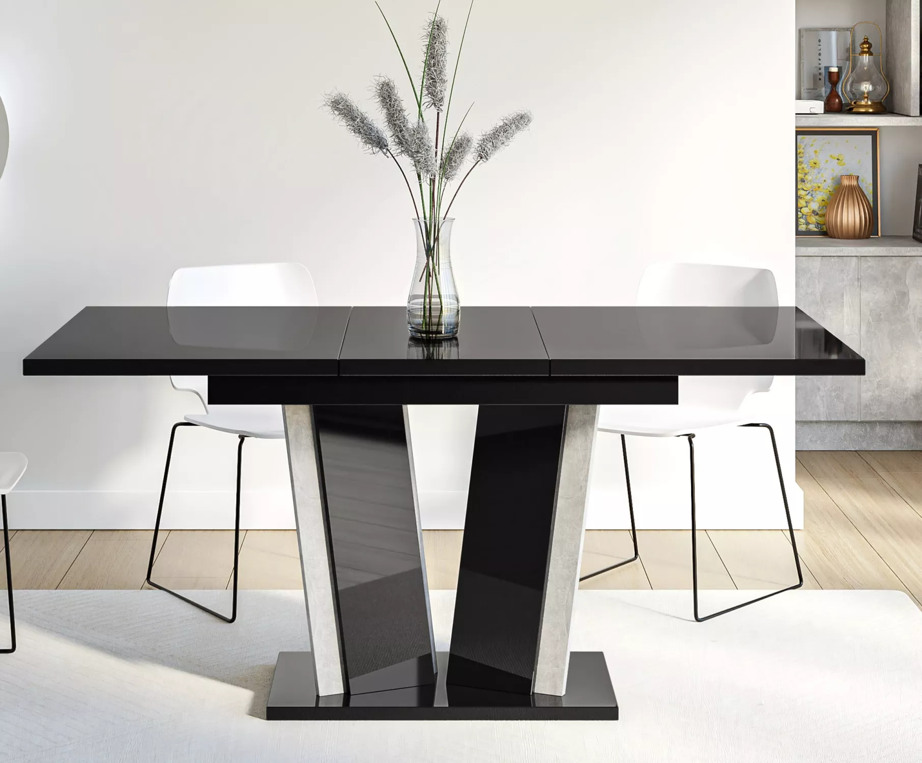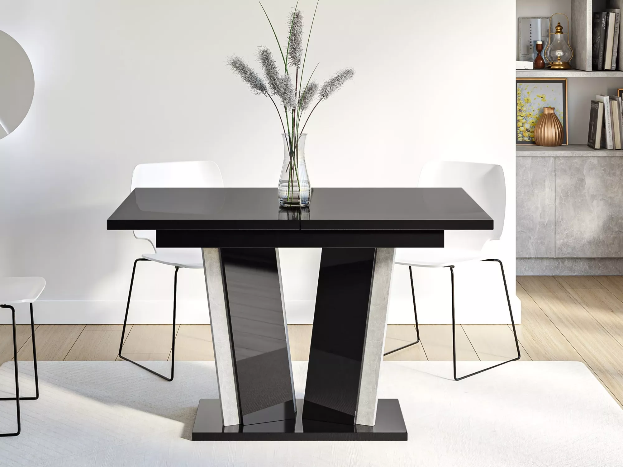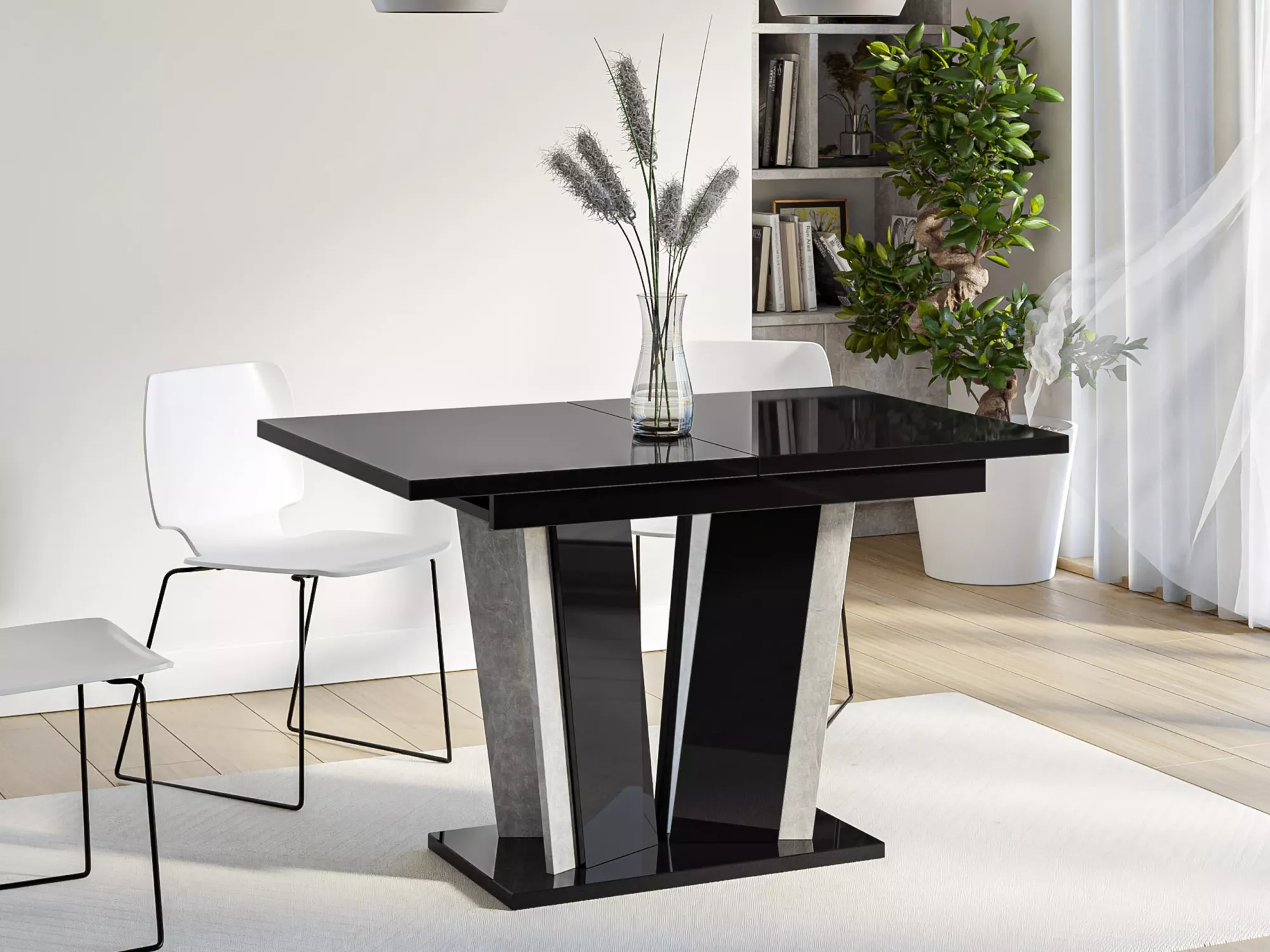 Rozkládací jídelní stůl OLEGIN - lesklý černý / šedý