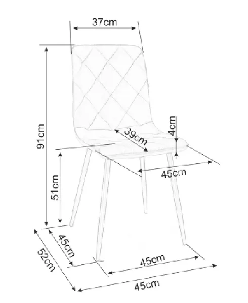 Čalouněná jídelní židle KINKA zaujme svým prošíváním. Kvalitu zpracování podtrhují kovové nožky.