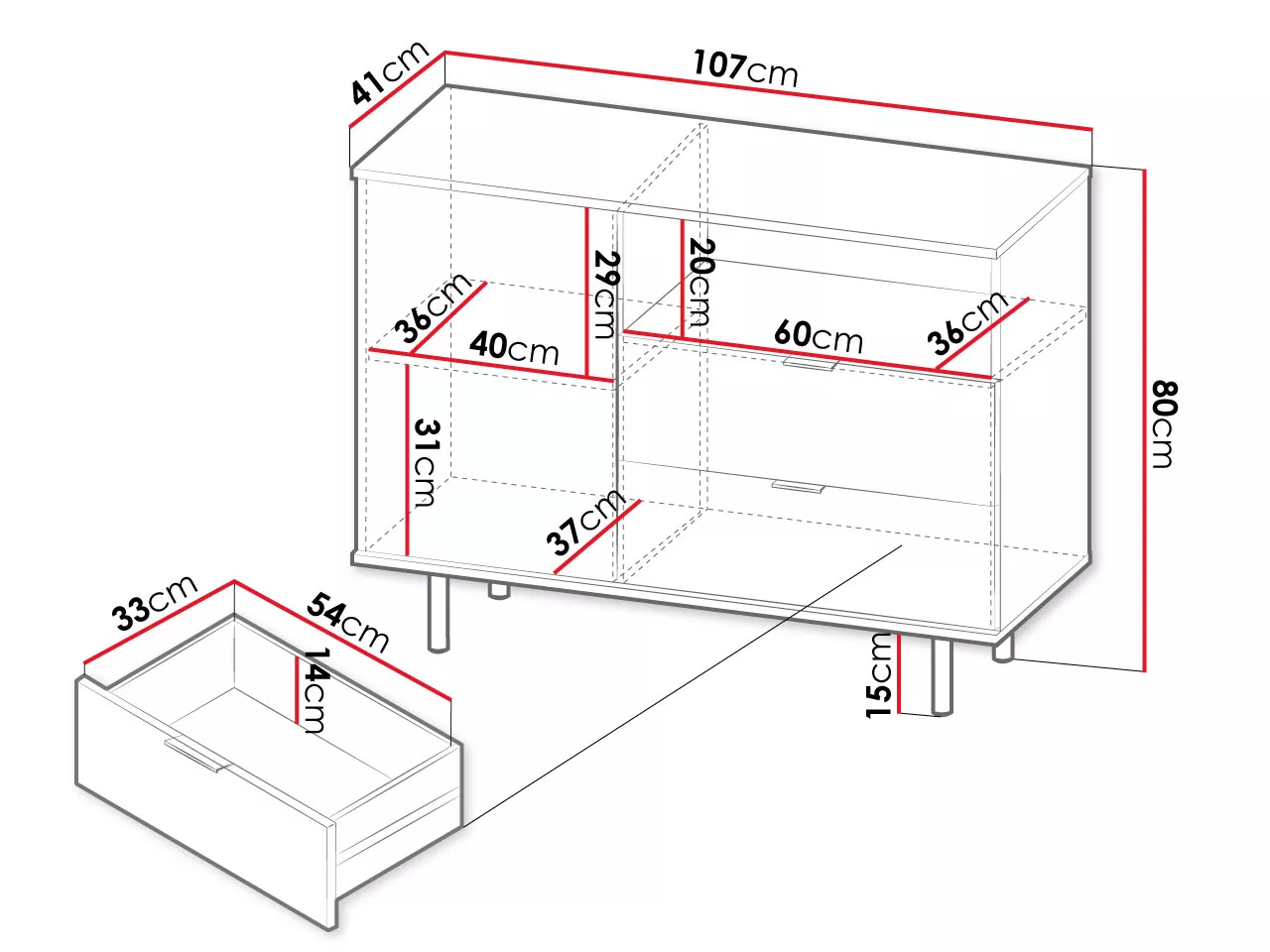 Kombinovaná komoda do obývacího pokoje IREDELL je mimořádný model, který potěší i ty nejnáročnější milovníky designu. Pozornost upoutá i bohatým interiérem. S pomocí mnoha polic a prostorných zásuvek budete mít vše uspořádané a vždy na svém místě.