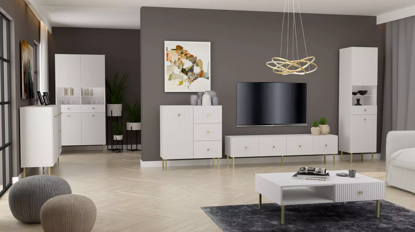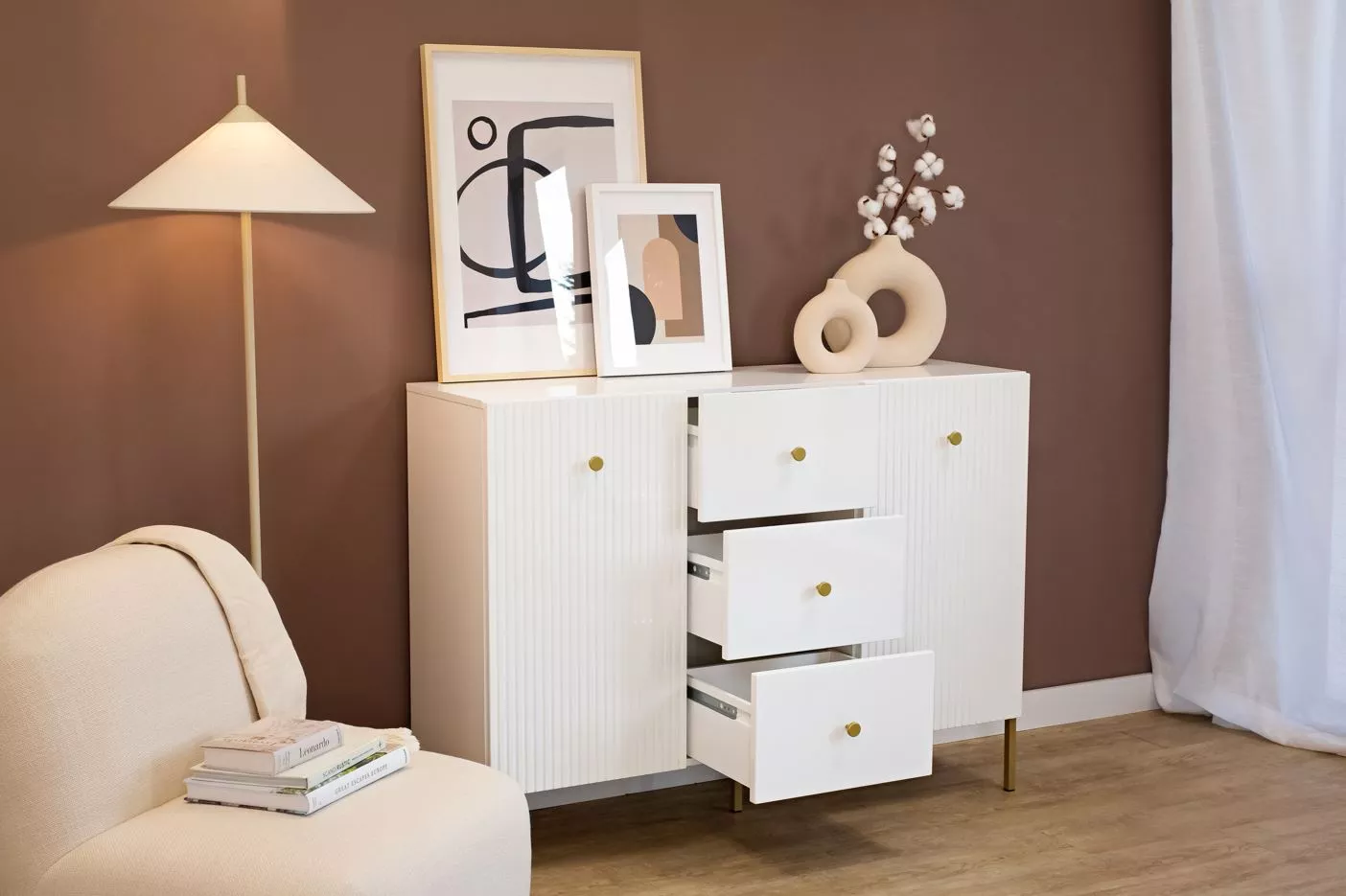 Široká kombinovaná komoda HASKEL 1 - bílá + zlatá