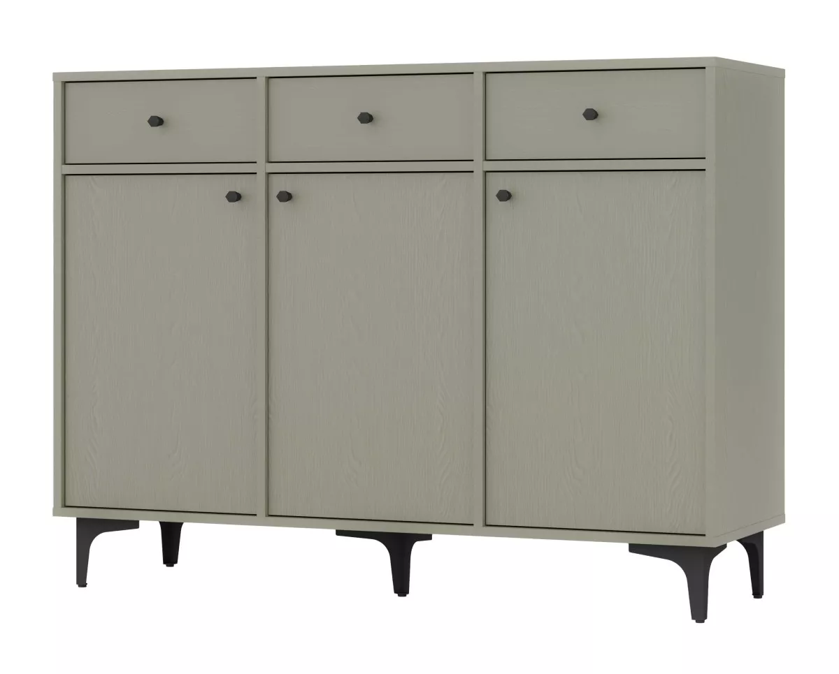 Kombinovaná komoda IROS 1 se šuplíky a dvířky je stylovým a praktickým nábytkem s elegantním designem. Komoda poskytuje dostatek úložného prostoru v podobě 3 uzavřených skříněk s policí a 3 šuplíků. Díky svému vzhledu se snadno začlení do různých interiérů, přinášejíc přitom dotek elegance a funkčnosti.