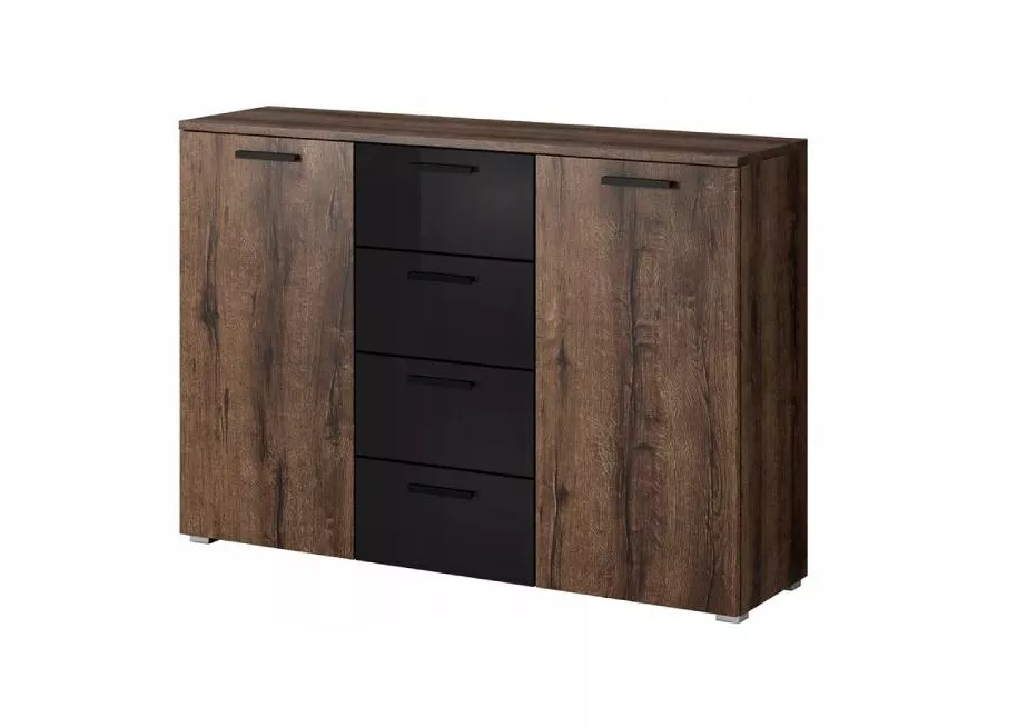 Nábytek Sára zdůrazňuje prostory ložnice nebo obývacího pokoje a jejich moderní design. Atraktivní komoda dokončená černým leskem, přední část zvyšuje vizuální hodnotu produktu a přitahuje pozornost dokonce i nejnáročnějších zákazníků. Model je vybavený dvoudveřovou přední částí a čtyřmi zásuvkami, díky čemuž získává funkční vlastnosti. Odolnost komody vůči poškrábání a vlivu slunečního záření nábytkové desky zaručuje dlouholetý komfort používání.