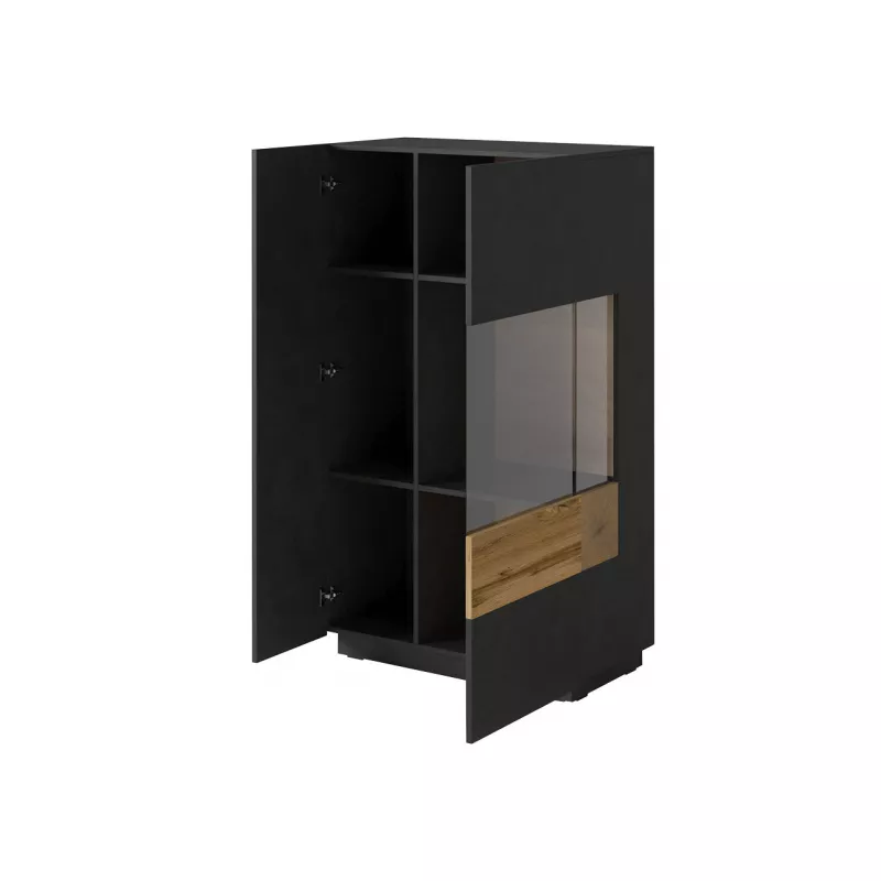 Vysoká komoda s prosklenou částí SHADI pravá, šedá/dub wotan