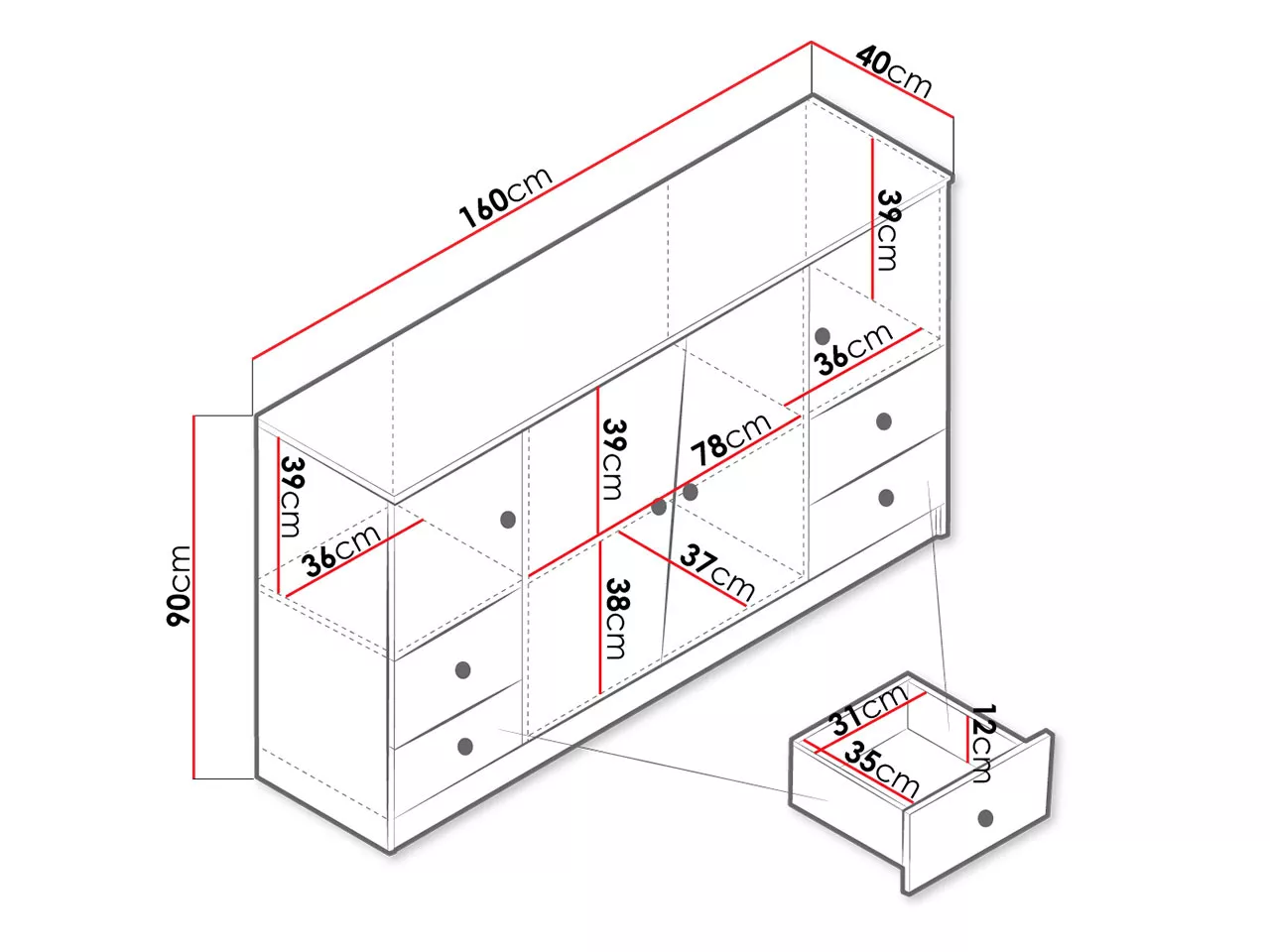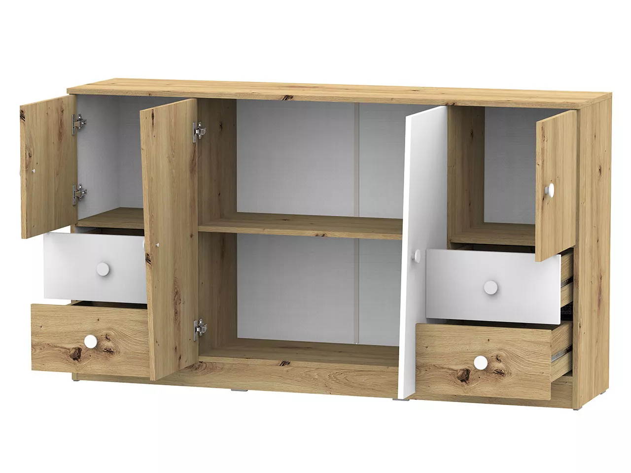 Kombinovaná komoda CHIMA 1 najde své využití v každém moderním interiéru. Dostatek úložného prostoru skvěle poslouží pro uložení jakýkoliv předmětů, včetně studijního materiálu či sezónního oblečení. Komoda je vyrobena z kvalitní LTD desky, jejíž hrany jsou pokryty ABS.