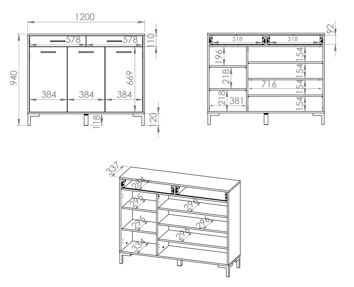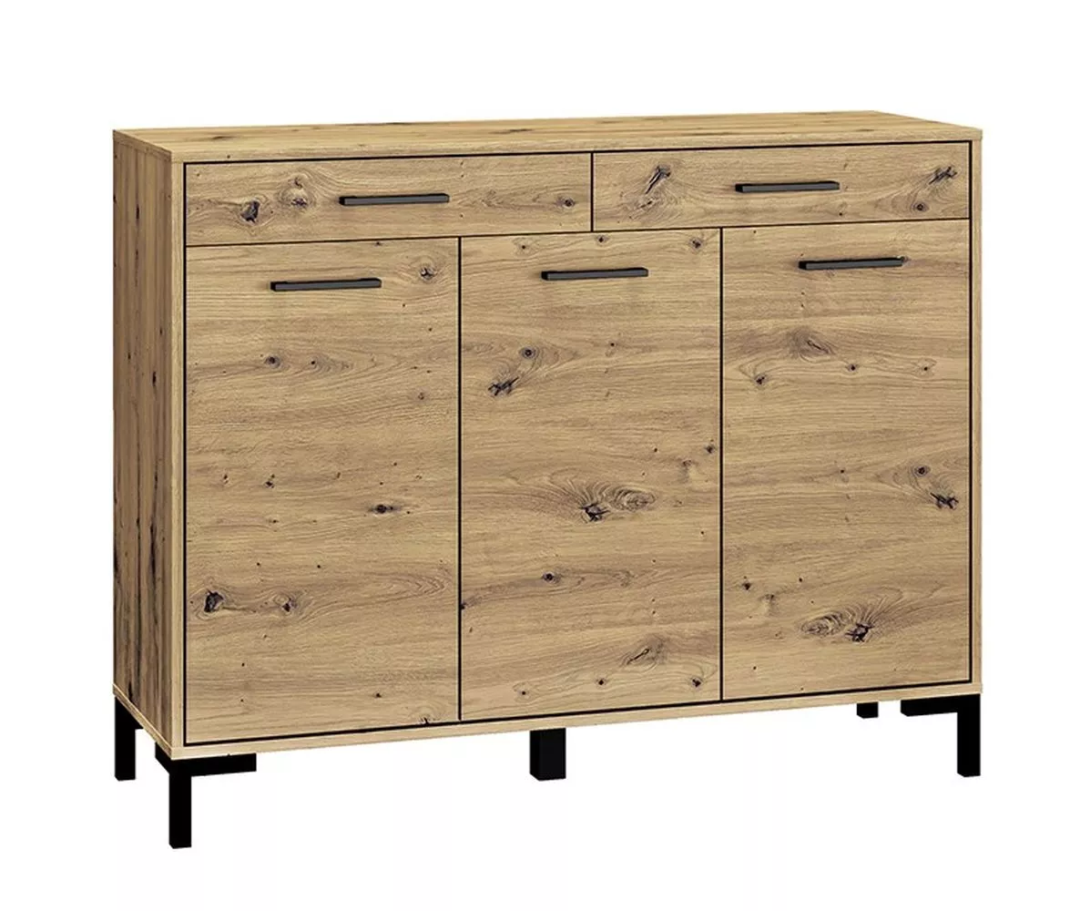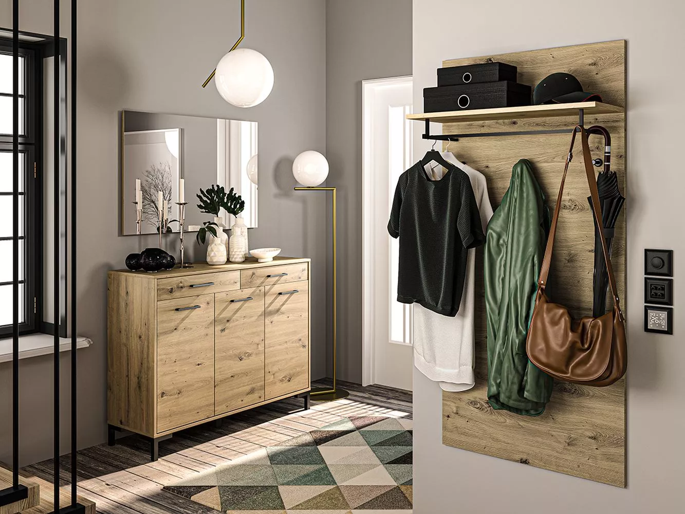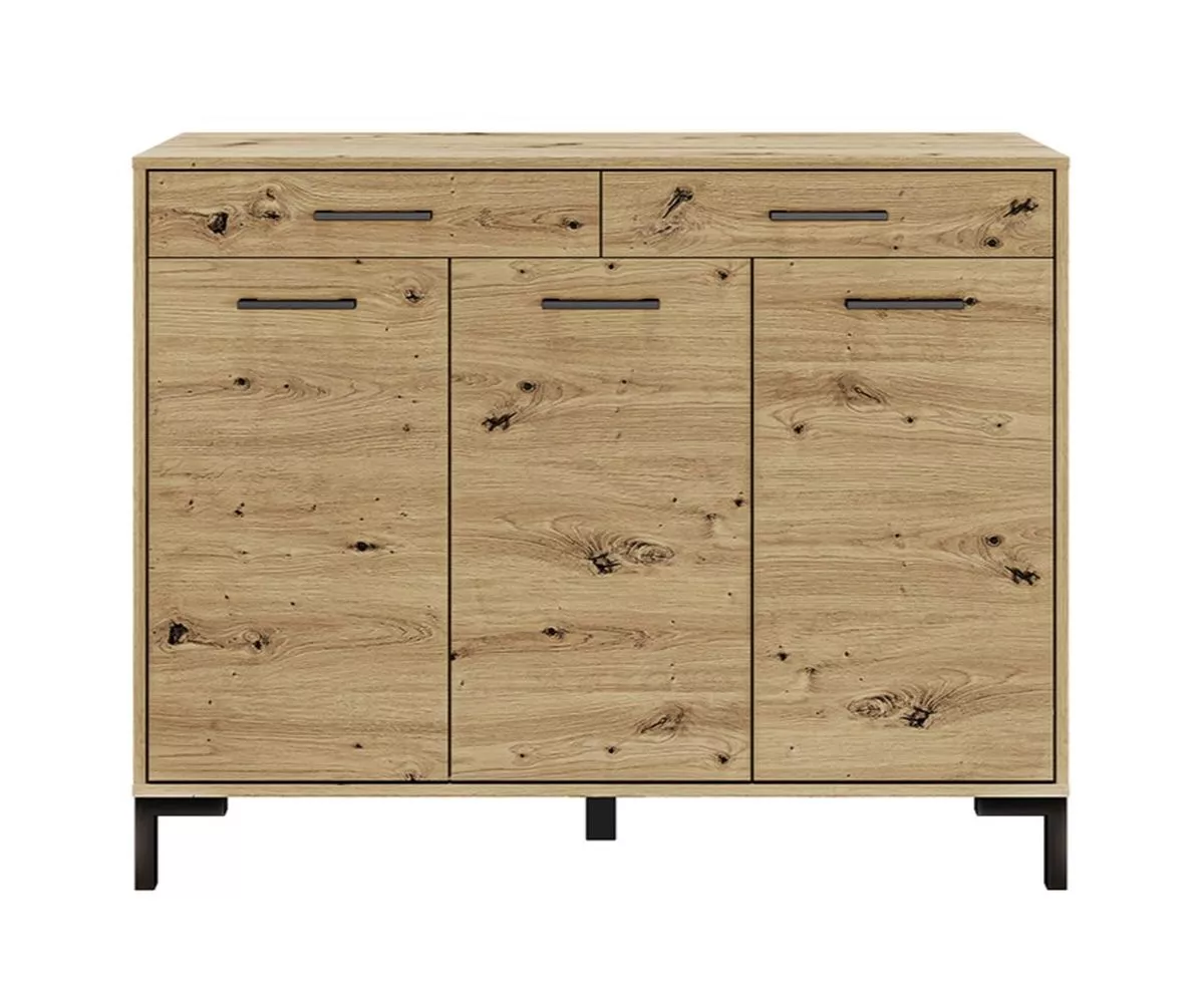 Velká komoda BEDA se hodí do všech moderních předsíní. Nabízí 2 plně výsuvné šuplíky a 5 polic.