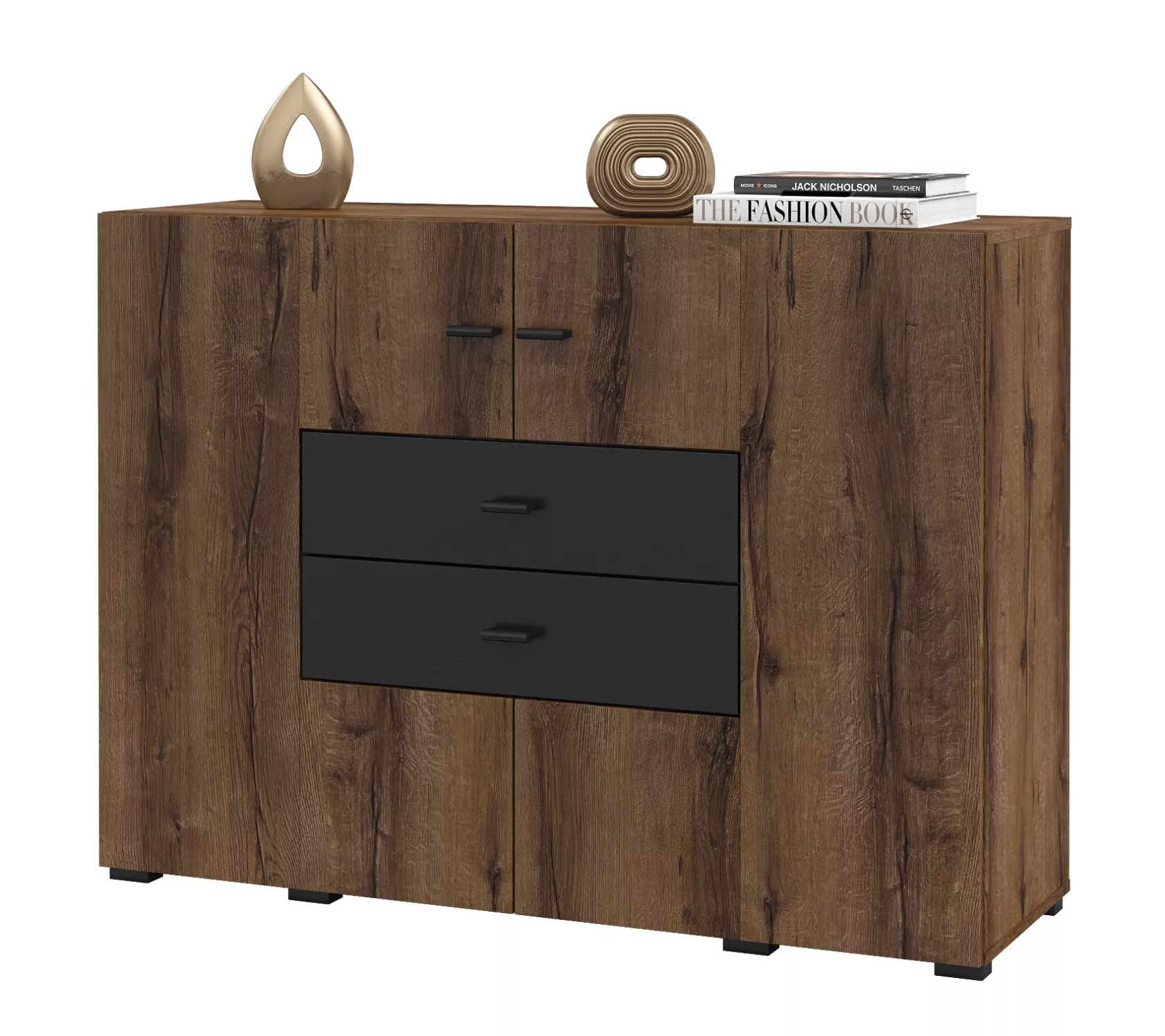 Kombinovaná komoda NIKOL se hodí do všech moderních ložnic či obývacích pokojů. Disponuje 2 šuplíky, 8 přihrádkami a 2 dvířky.