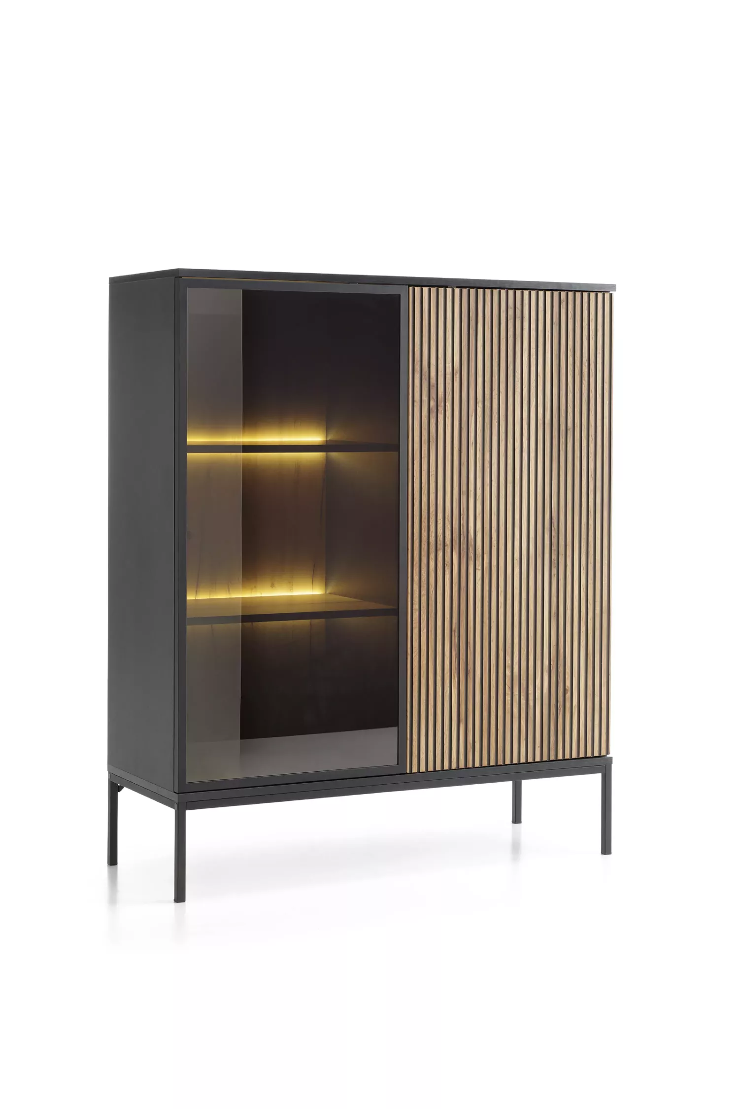 Prosklená komoda ILARIA je velmi prostorná komoda se 4 policemi. Zaujme svými frézovanými dvířky. Prosklená část může sloužit k vystavení dekorací nebo knih. V druhé uzavřené polovině lze schovat jakékoliv předměty.