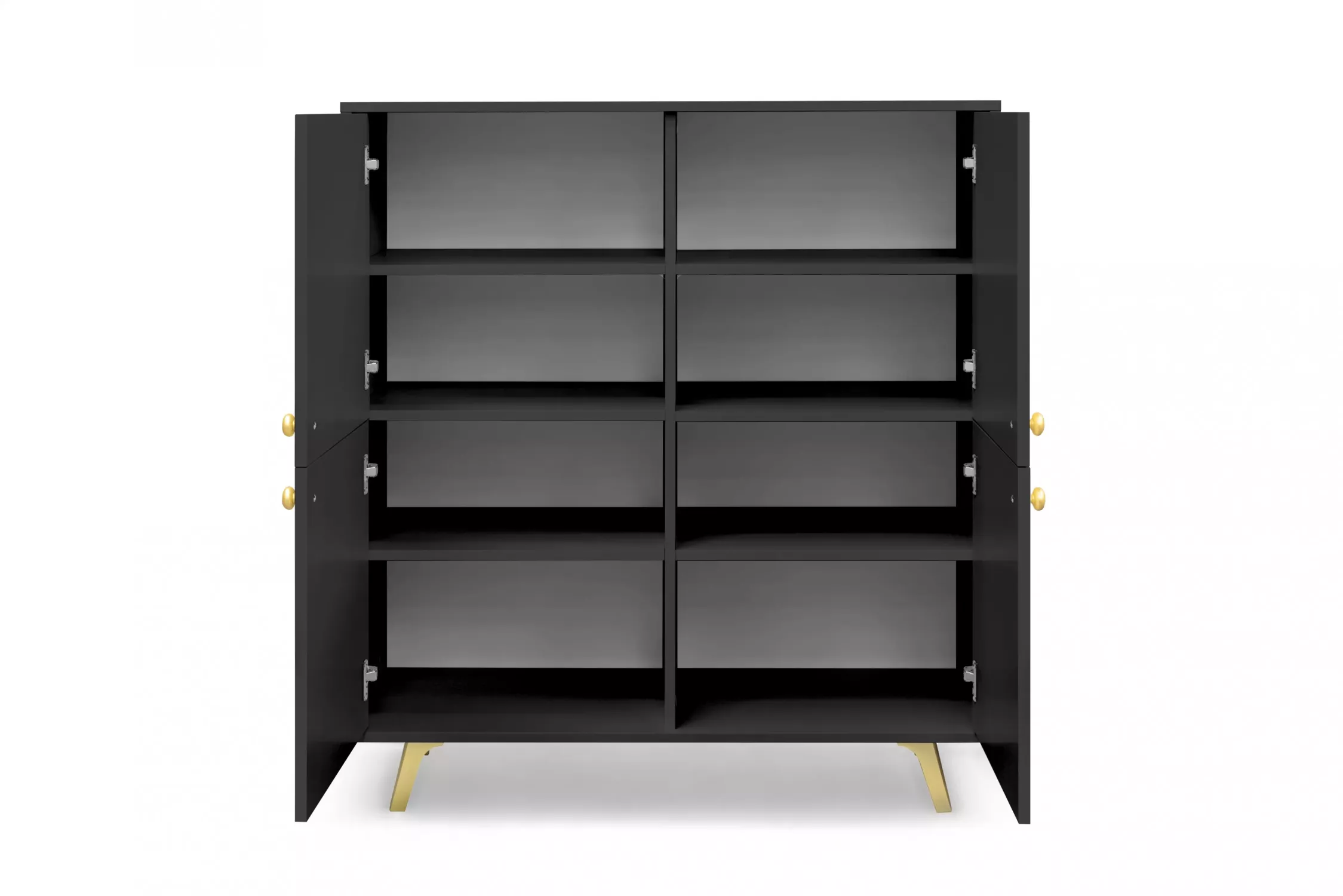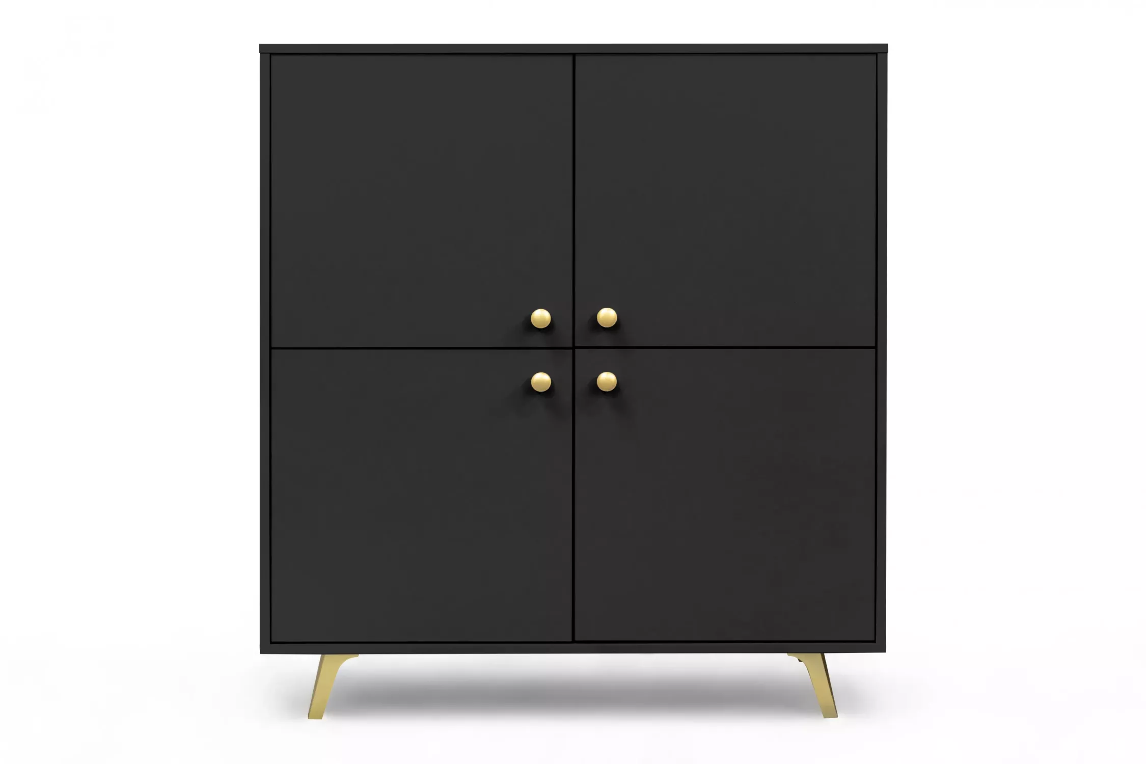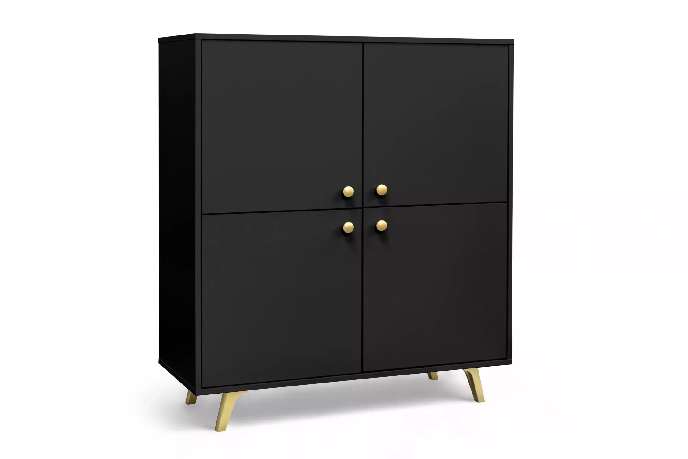 Čtyřdveřová komoda JOELE se hodí do každého moderního studentského či dětského pokoje. Poskytuje dostatek úložného prostoru pro uložení oblečení nebo hraček. Úchyty ve zlaté barvě zdůrazní výjimečnost této komody.