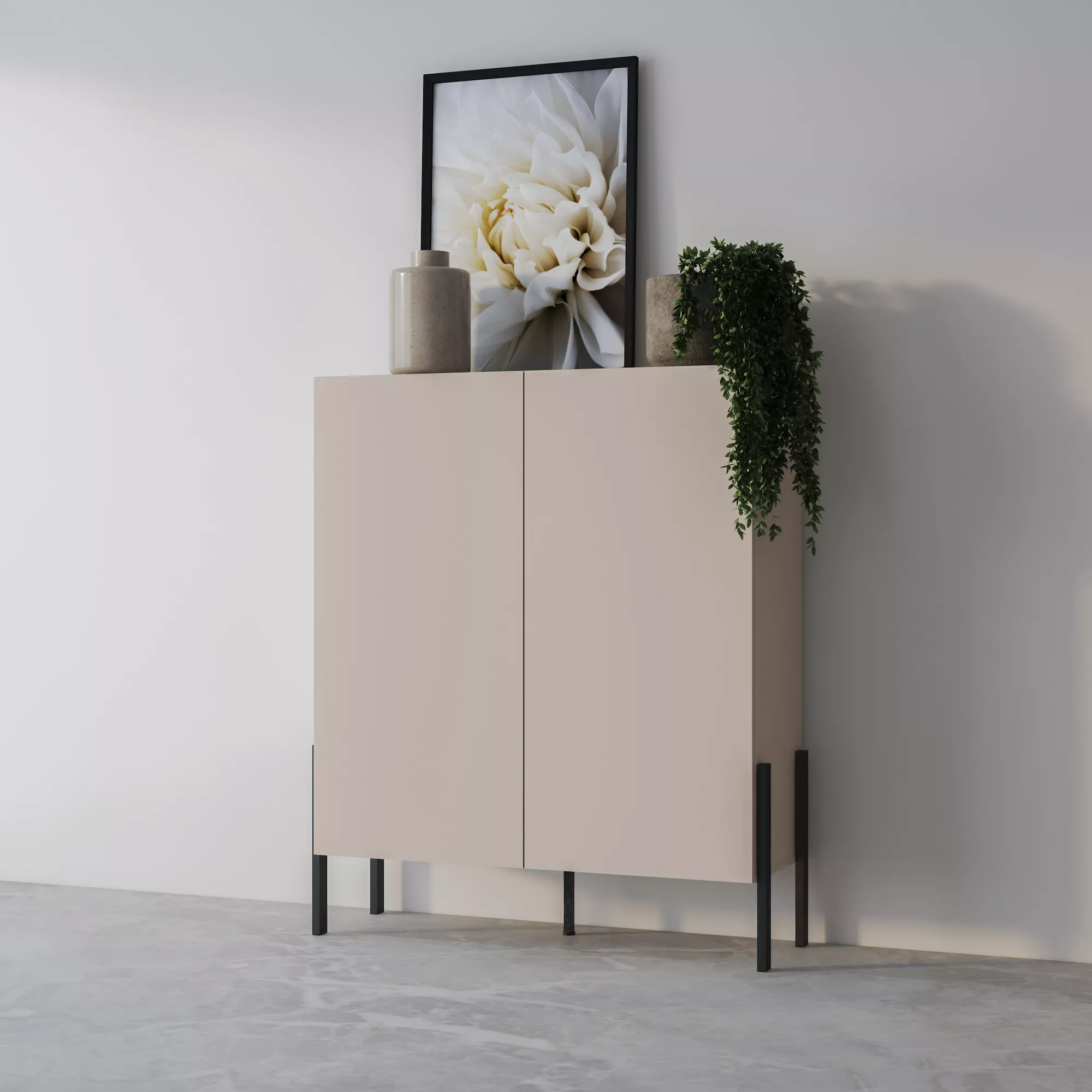 Dvoudveřová komoda RAILA vás zaujme svým elegantním a jednoduchým designem. Kovové nožky dodávají komodě lehkost. Dostatek úložného prostoru nabízí 4 prostorné police.