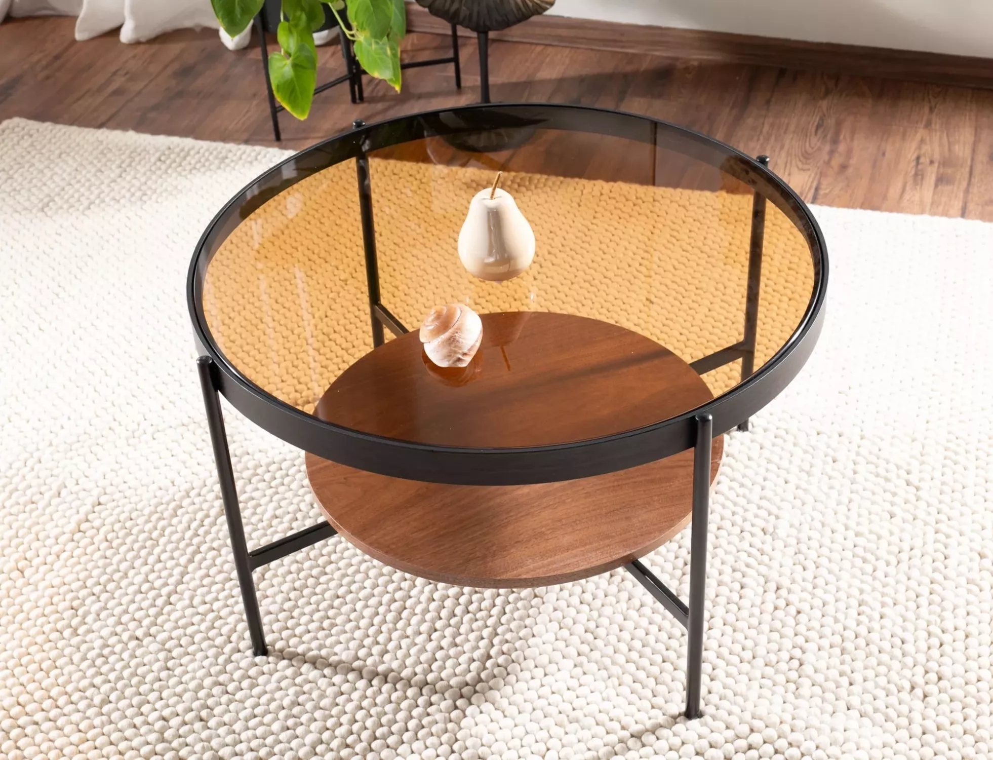 Kulatý konferenční stolek TALLIS - jantar / ořech