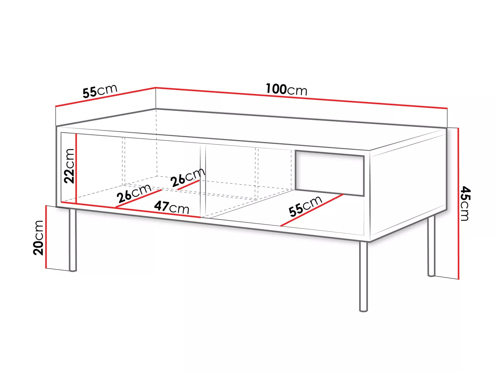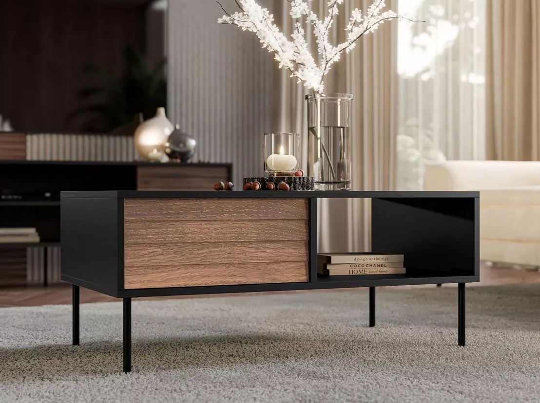 Konferenční stolek MAYKI přináší do vašeho obývacího pokoje moderní styl a funkčnost. Vybavený poličkou a skříňkou nabízí dostatek úložného prostoru pro časopisy, dálkové ovladače a další potřeby.