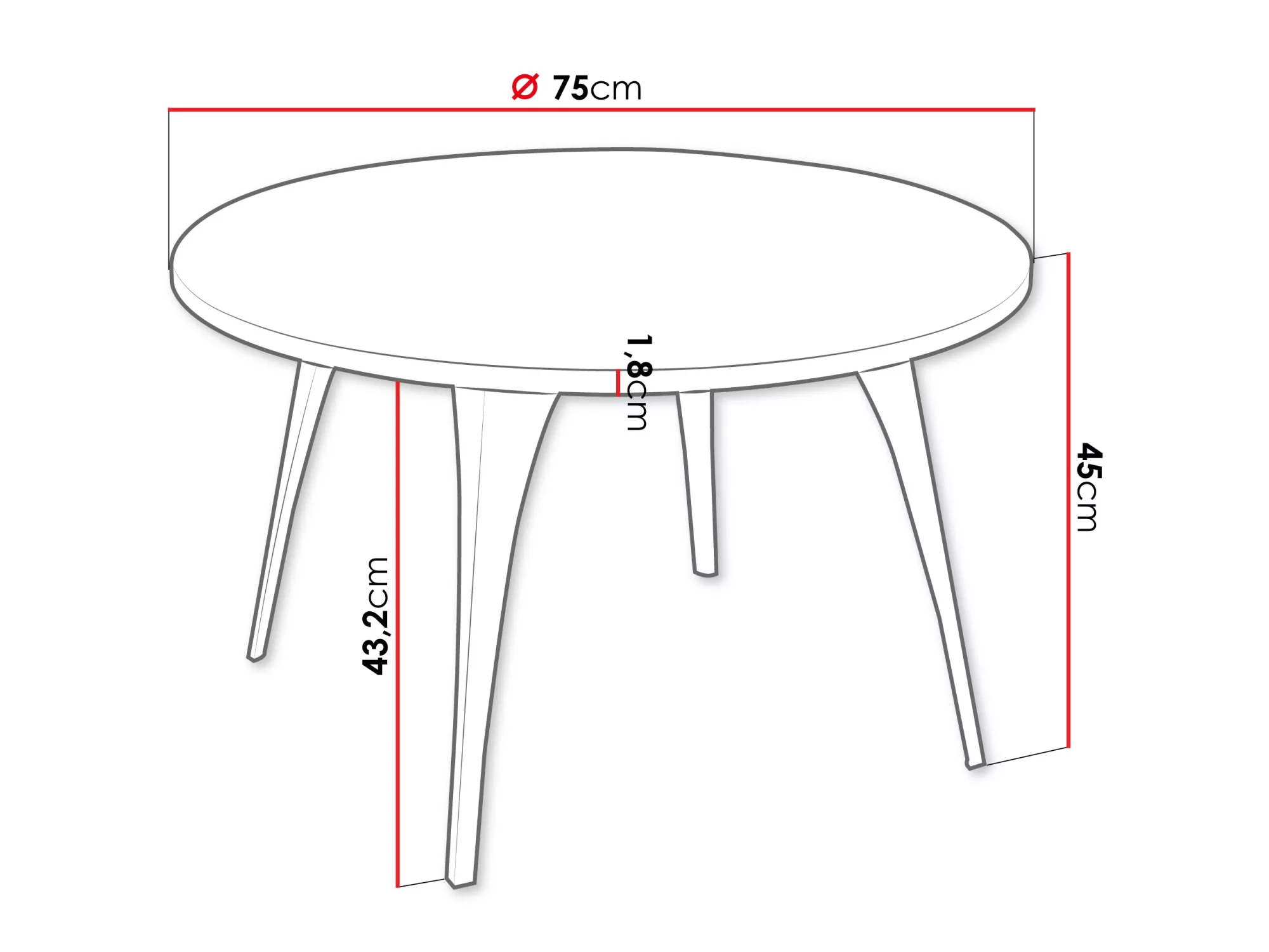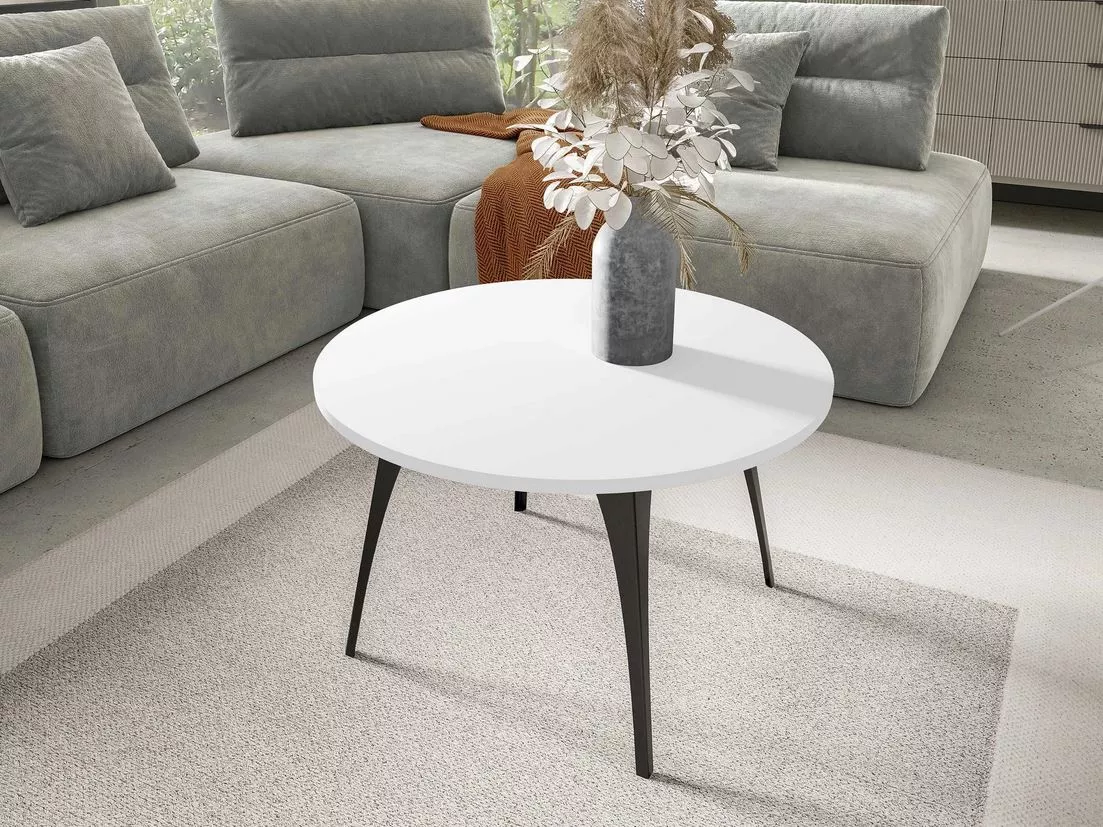Konferenční stolek FRANIO vyniká svým minimalistickým a moderním designem. Kulatá horní deska v kombinaci s elegantními, štíhlými nohami vytváří čistý a stylový vzhled. Ideální volba pro interiéry, které upřednostňují jednoduchost a nadčasovou eleganci.