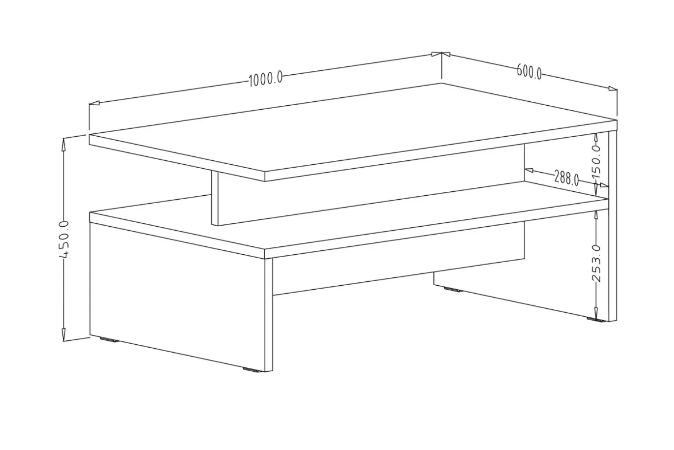 Pro výrobu konferenční stolku do obývacího pokoje bylo použité kvalitní LTD, které je odolné proti poškrábání i vlivu slunečního záření. Navíc je lemováno ABS hranami. Celkové rozměry nábytku jsou 100 × 45 × 60 cm. Horní odkládací plocha je dostatečně prostorná i pro občerstvení nachystané pro návštěvy. Moderní konferenční stolek BRYCE si své místo najde jak v menších, tak větších interiérech.