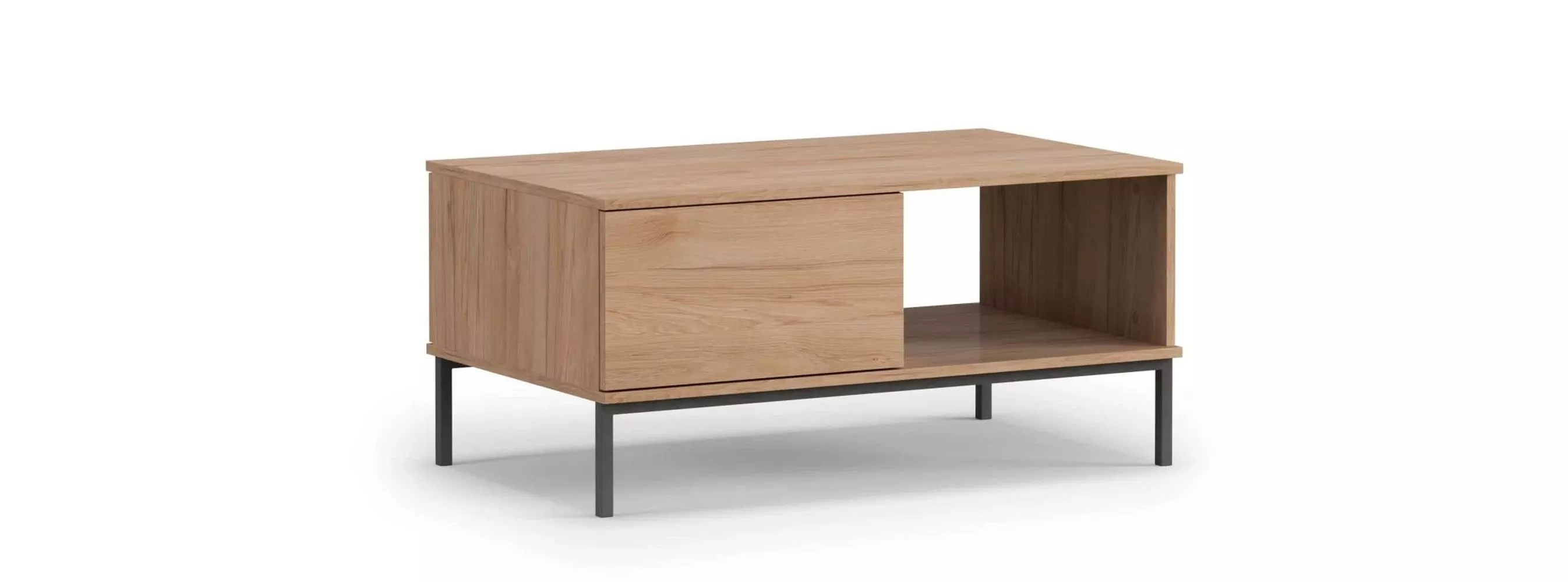 Konferenční stolek NIXI dokonale zapadá do současných interiérů. Stolek do obývacího pokoje o rozměrech 100 cm x 60 cm se dokonale hodí k většině čalouněného nábytku. Navíc je vybaven otevřenou policí na ovladače nebo noviny a zásuvkou na drobné předměty, kterou lze otevřít pomocí systému "PUSH TO OPEN".