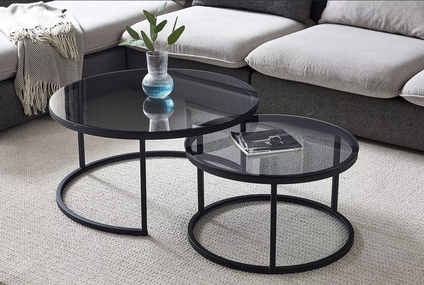 Sada konferenčních stolků EVODIA 5 - transparentní šedá / matná černá
