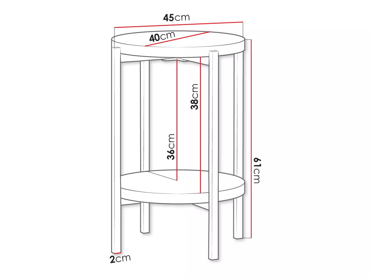 Konferenční stolek PASQUAL 4 je nepostradatelným kusem nábytku do obývacího pokoje. Kulatá a pevná horní deska o průměru 45 cm v kombinaci s kovovými nožkami tvoří mimořádně úhledný celek. Praktická polička umístěná pod horní deskou slouží k odložení časopisů a TV příslušenství.