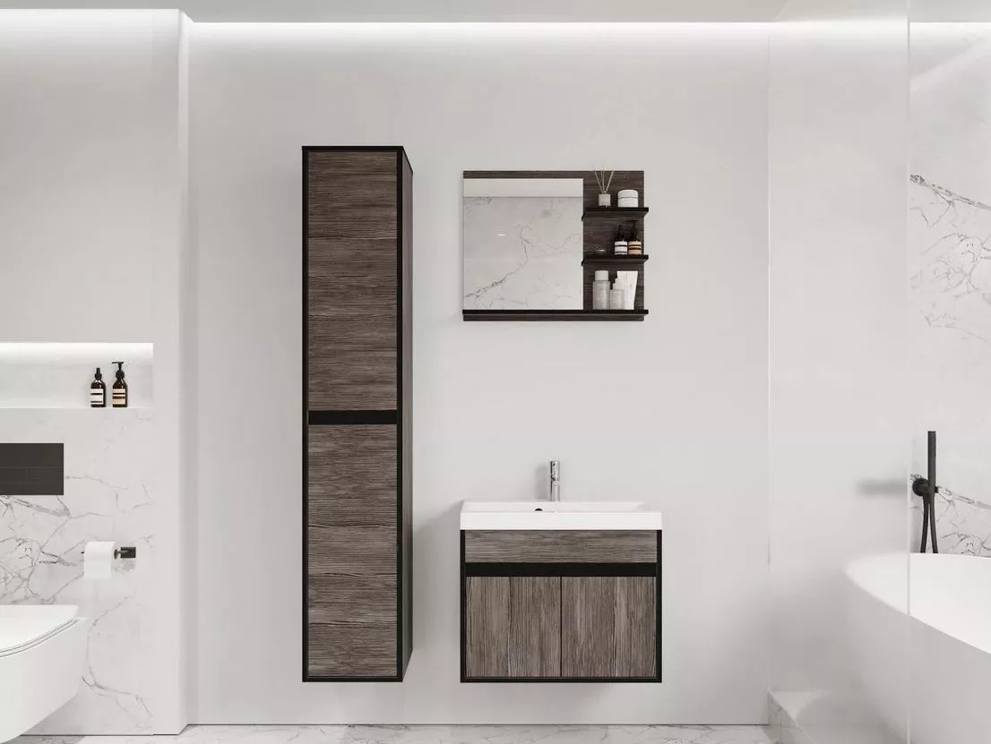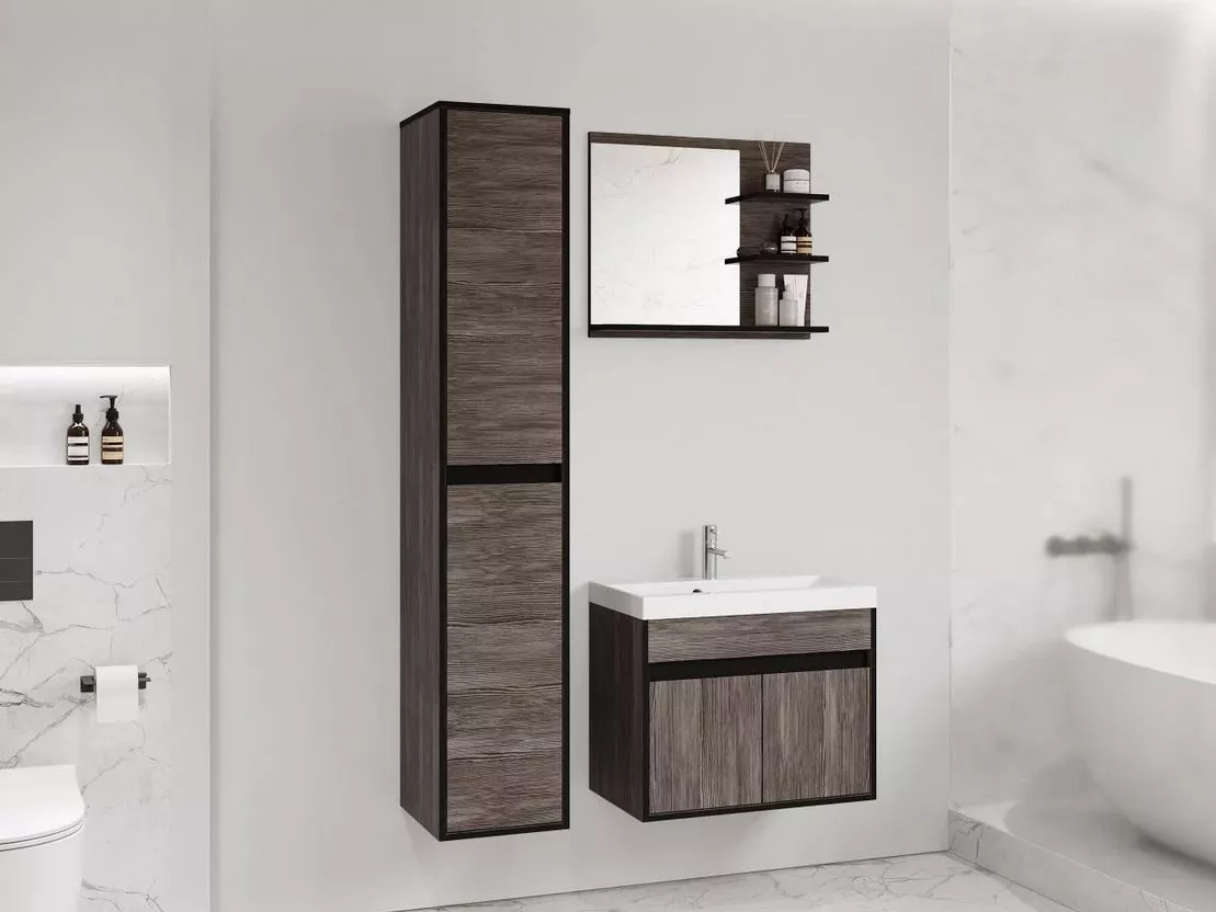 Koupelnová sestava se zrcadlem DENISON - modřín bodega / černý grafit