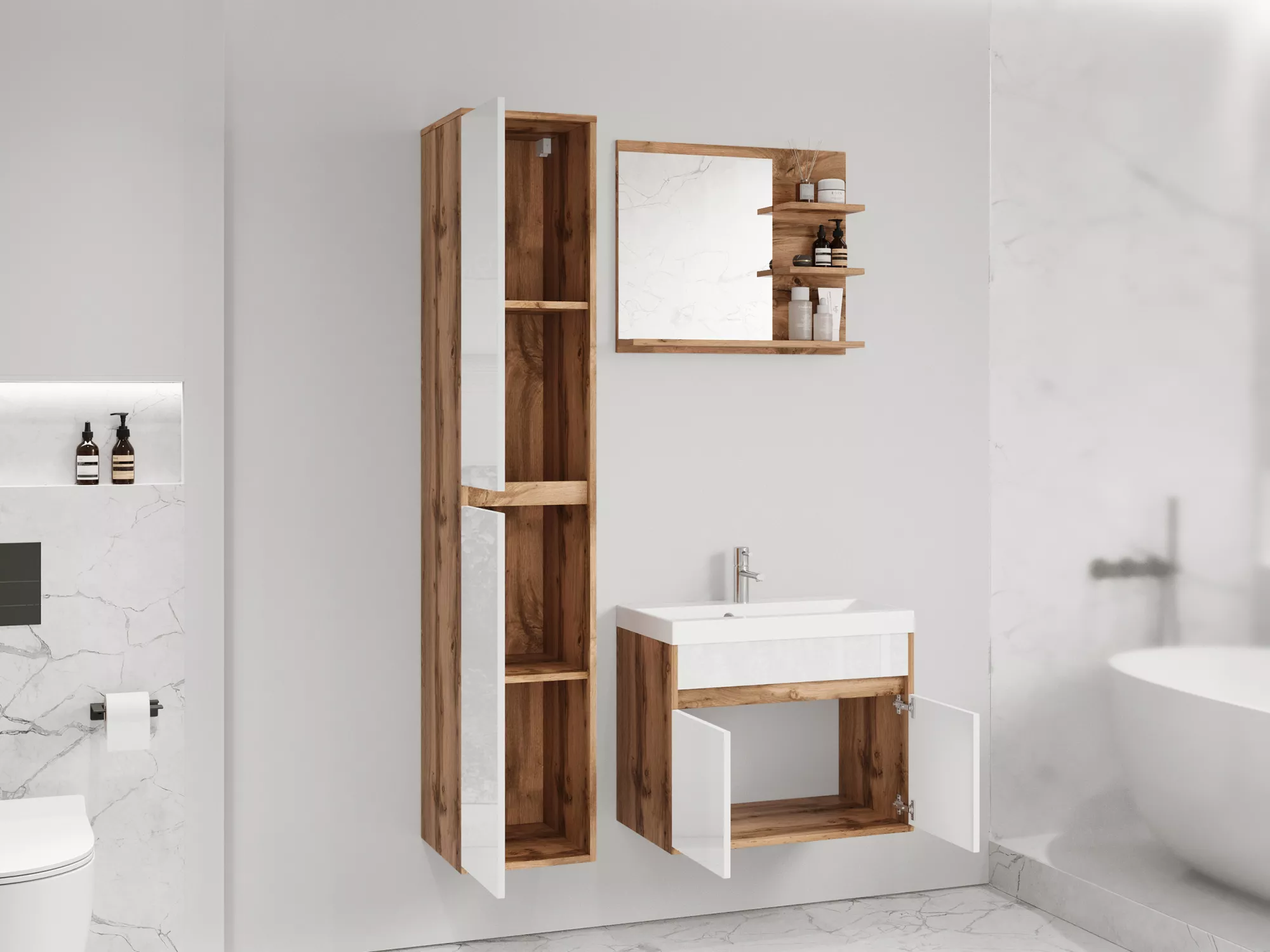 Maximalizujte prostor ve vaší koupelně s koupelnovou sestavou DENISON, která je navržena tak, aby splňovala vaše potřeby, a zároveň zapadala do trendů současného designu. Sestava se skládá ze skříňky pod umyvadlo, umyvadla, závěsné vysoké skříňky a zrcadla s poličkou.