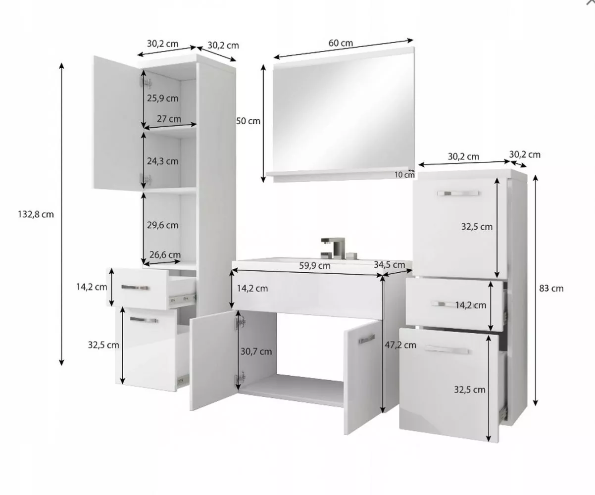 Koupelnová sestava ALINA - bílá / bílý lesk