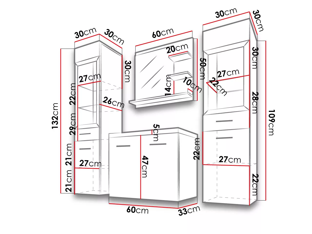 - závěsná vysoká skříňka 1: 30/132/30 cm