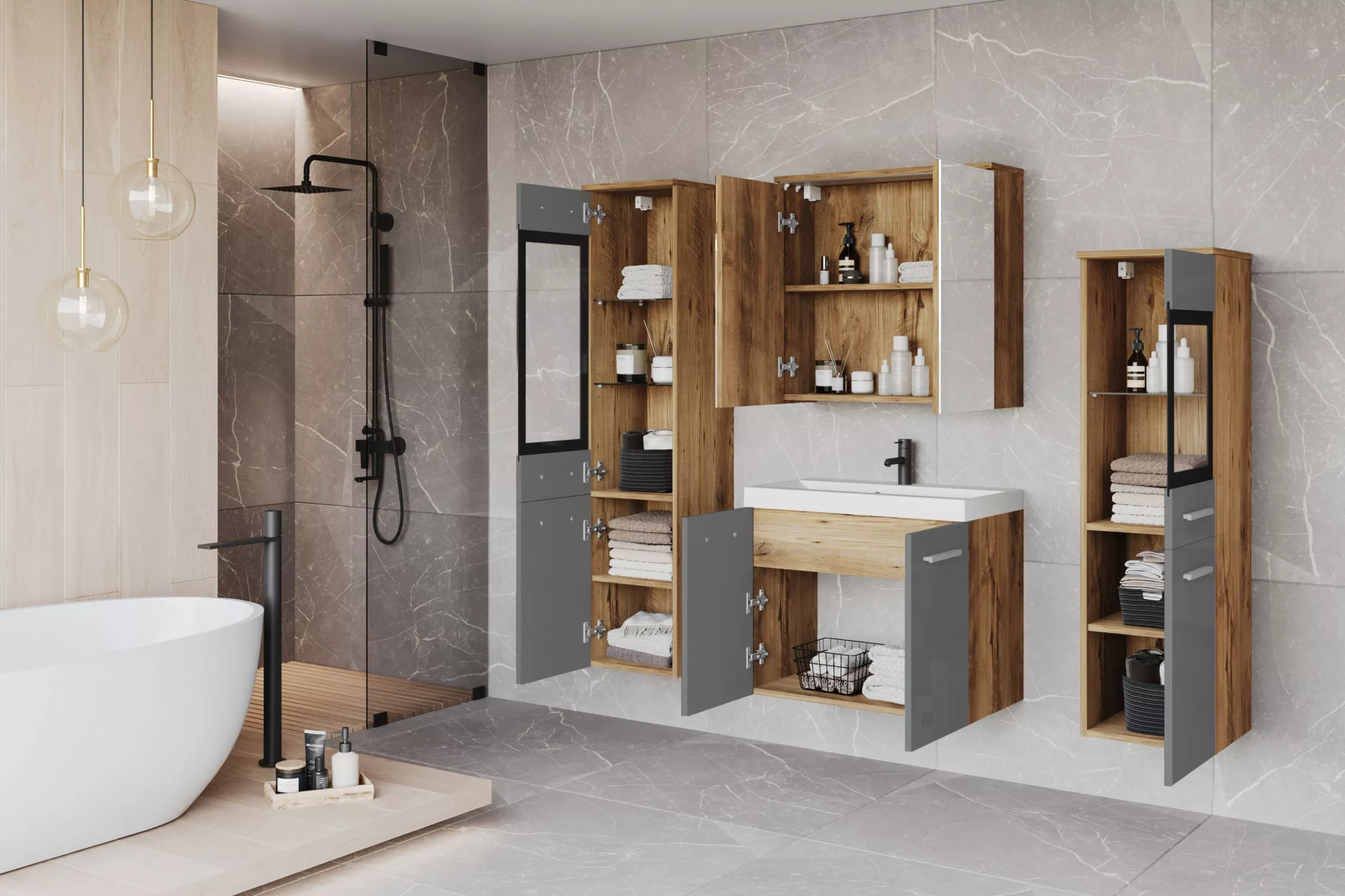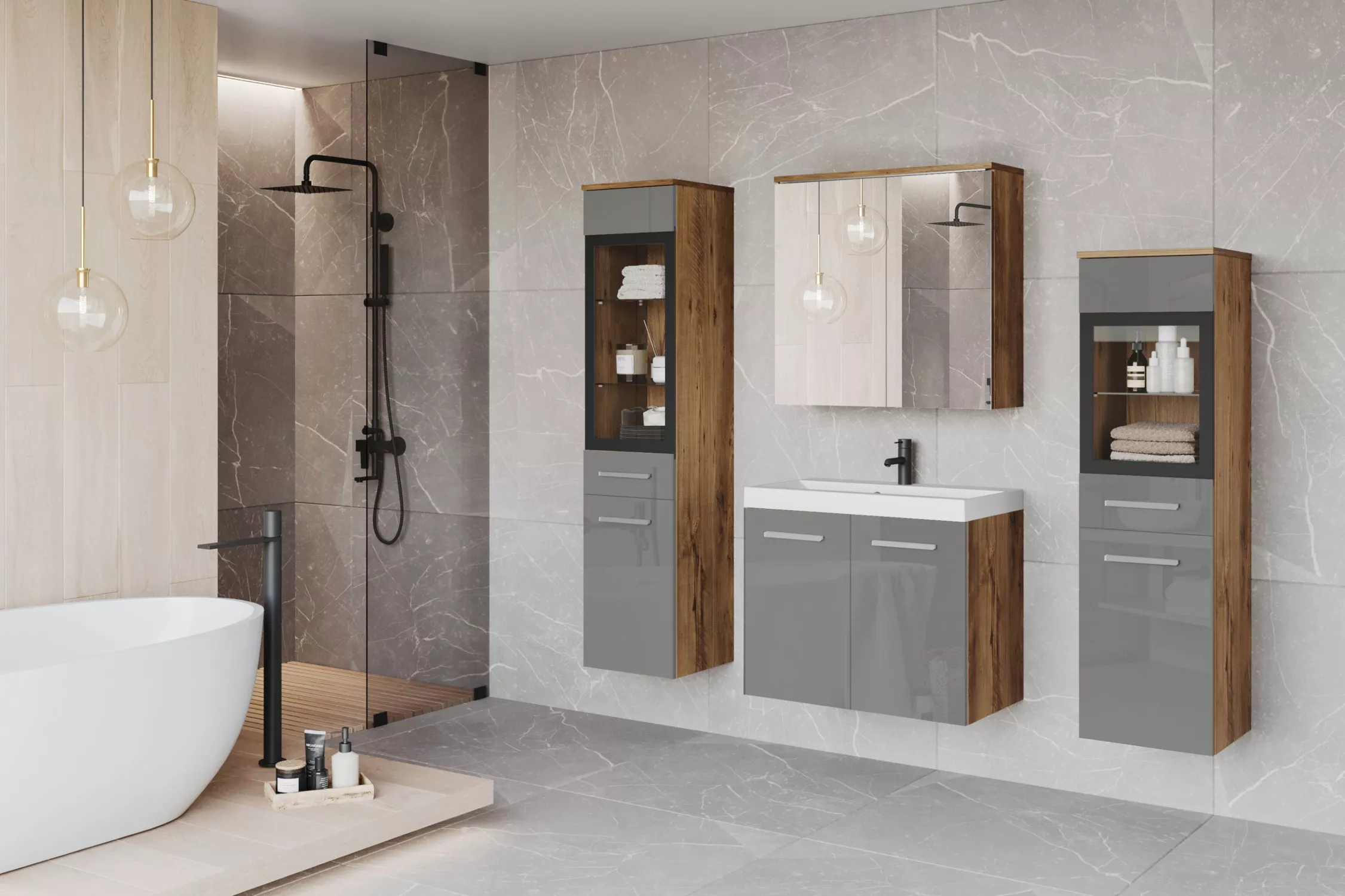 Koupelnová sestava ESTELA 2 - kaštan / šedá lesk