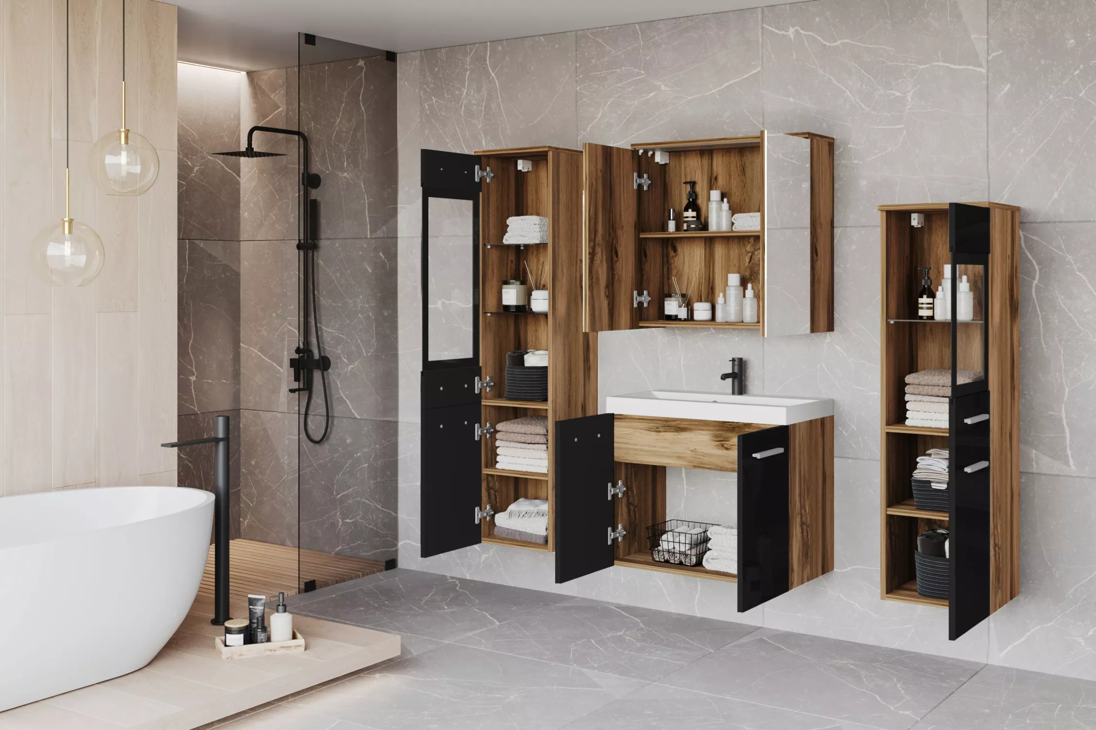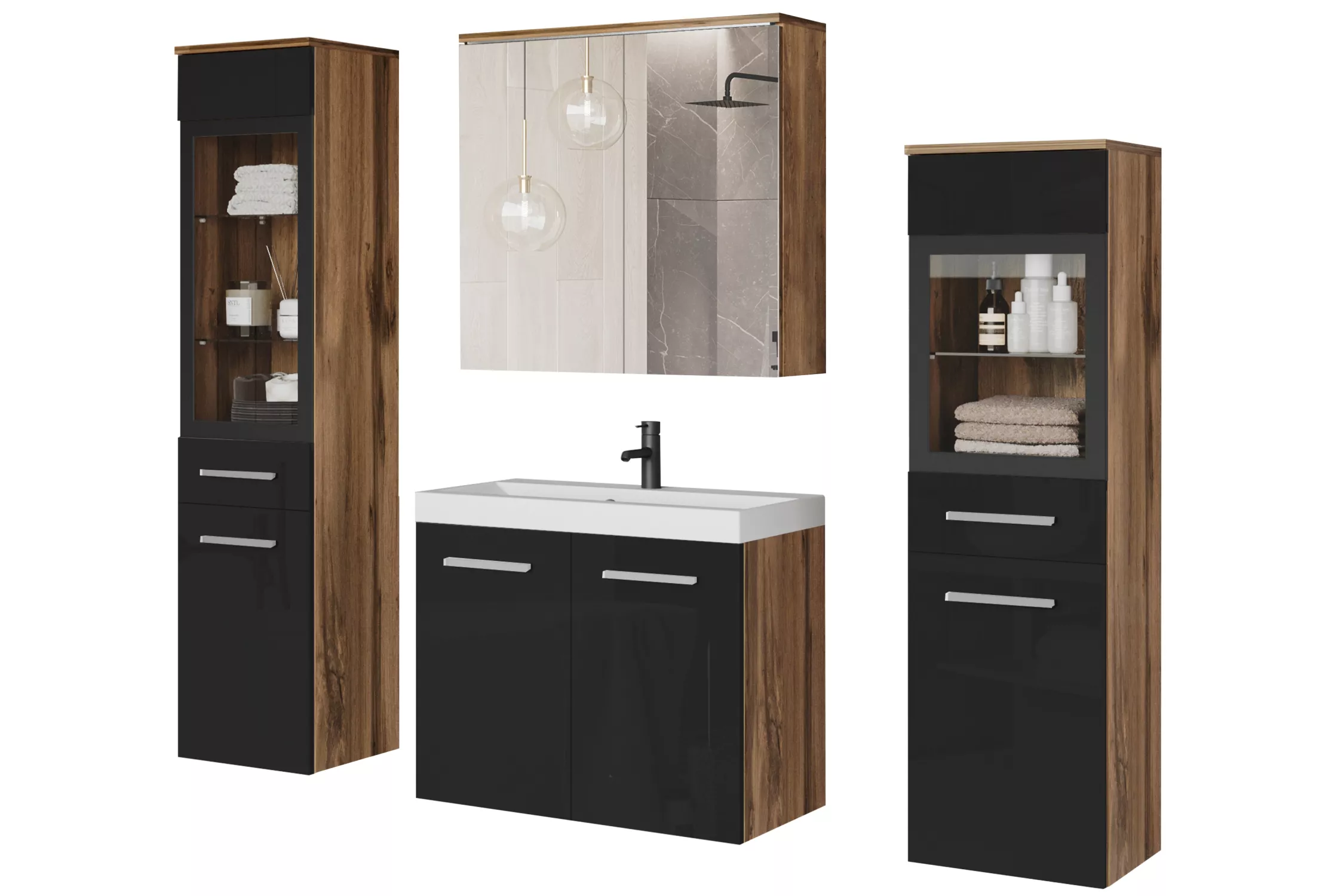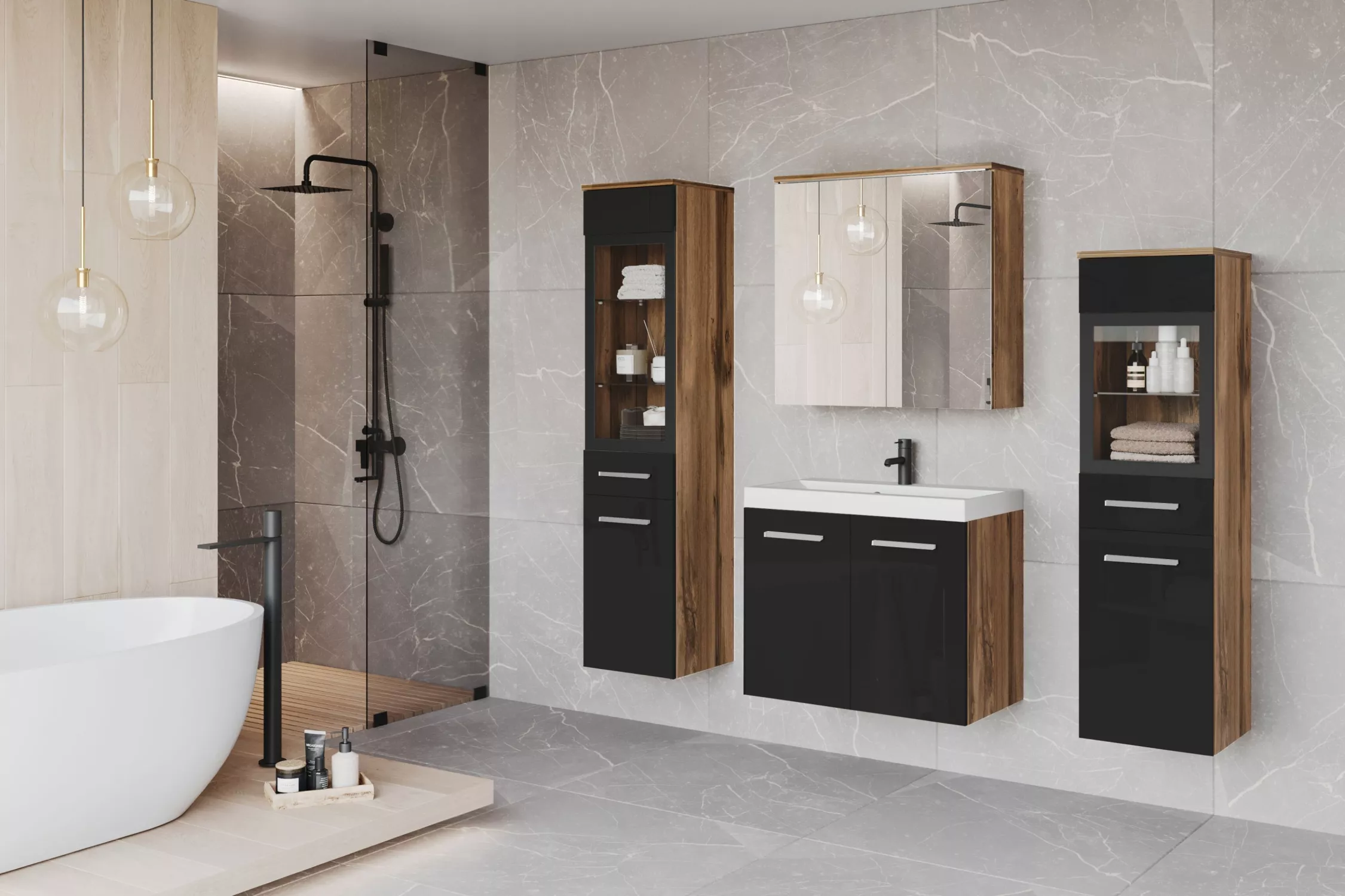 Koupelnová sestava ESTELA 2 - dub wotan / černá lesk