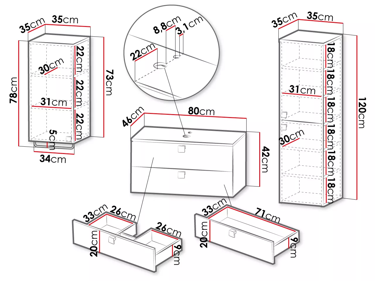 Koupelnovou sestavu dodáváme bez vyobrazeného nástěnného zrcadla. Vhodné modely k dokoupení najdete v sekci Doporučujeme přikoupit.