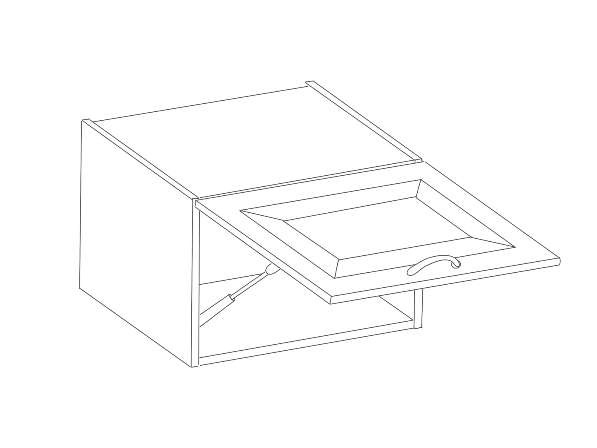 Horní kuchyňská skříňka s výklopnými dvířky byla navržena pro milovníky klasického stylu. Kuchyně LAILI se vyznačuje módními barvami, atraktivním vzhledem a krásnými černými úchytkami. Dvířka se otevírají pomocí plynových pístů.