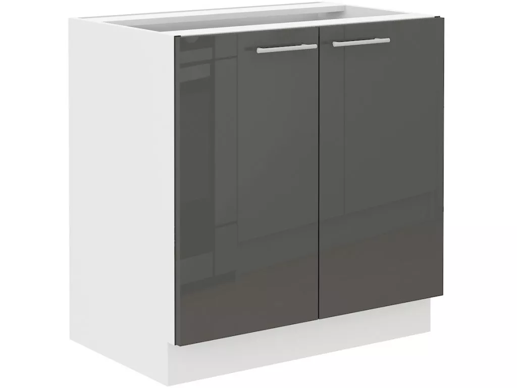 Dolní skříňka pod dřez je nábytek vybavený dvířky s kovovými úchyty. Dvířka mají moderní systém tichého dovírání. Korpus kuchyňské skříňky LAJLA je vyroben z desky v bílém matu, zatímco dvířka z desky ve vysokém lesku.