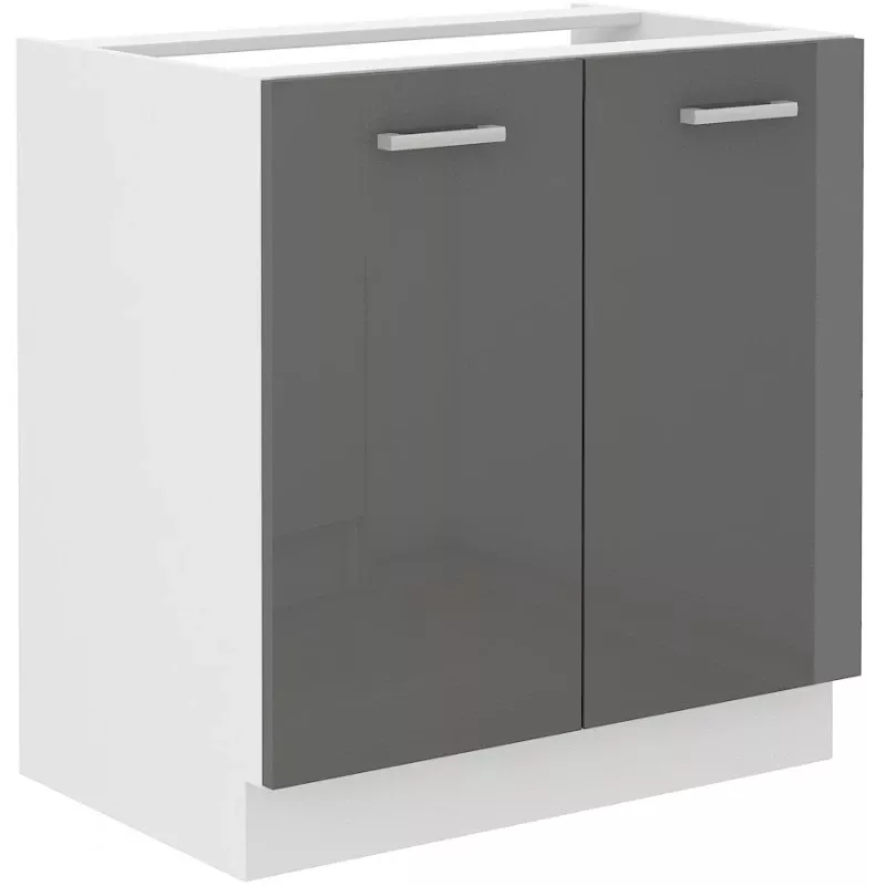 Dolní skříňka pod dřez je nábytek vybavený dvířky s úchyty. Korpus kuchyňské skříňky SAEED je vyroben z desky v bílém matu, zatímco dvířka z desky ve vysokém lesku.