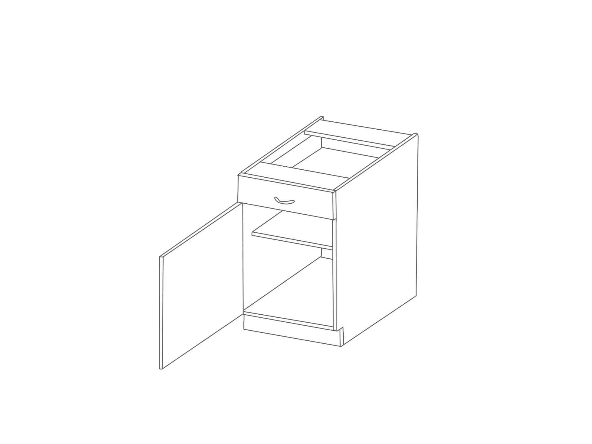 Prostorná dolní kuchyňská skříňka SOPHIA je nenahraditelným úložištěm pro hrnce, pánve a další předměty potřebné pro každodenní přípravu pokrmů. Na police umístěné uvnitř můžete uložit i zásoby potravin, nádobí, ale i kuchařky, které používáte každý den. Skříňka je navíc vybavena i šuplíkem, do kterého můžete schovat veškeré příbory.