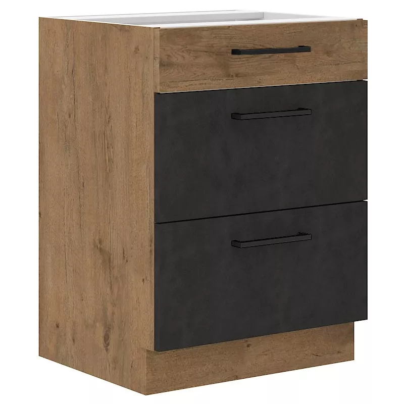 Máte rádi tmavší kuchyně? Už vás nebaví sterilní bílá? Vneste do svého pokoje eleganci a luxus díky skříňkám VANYA. Kuchyně se neobejde bez skříňky se zásuvkami. Šířka 60 cm vám umožní schovat mnoho doplňků nebo hrnců. Různorodá velikost zásuvek vám umožní umístit sklenicena potraviny nebo kuchyňské roboty.