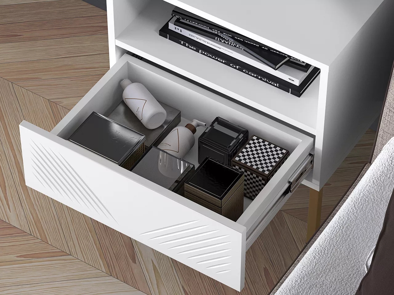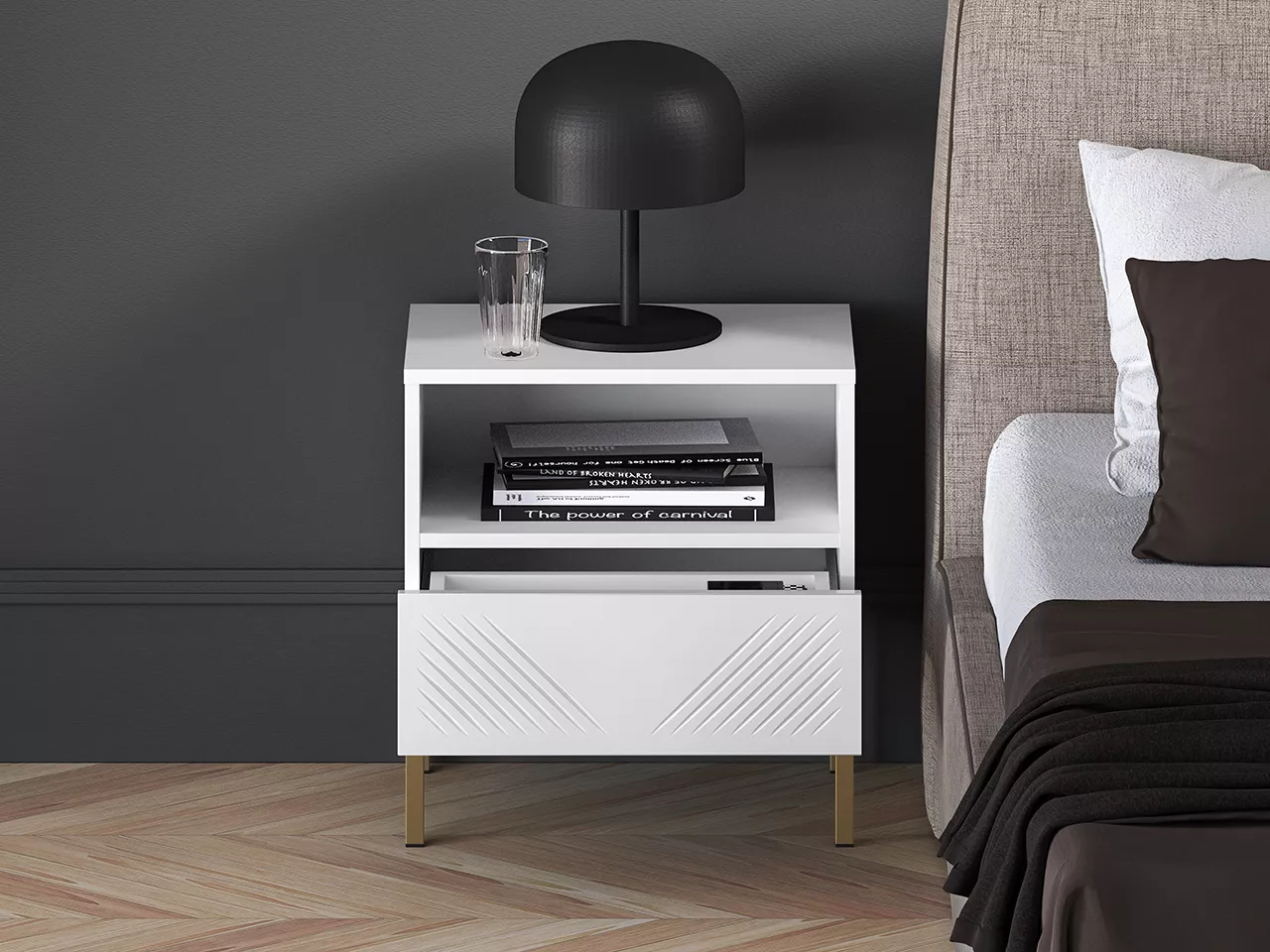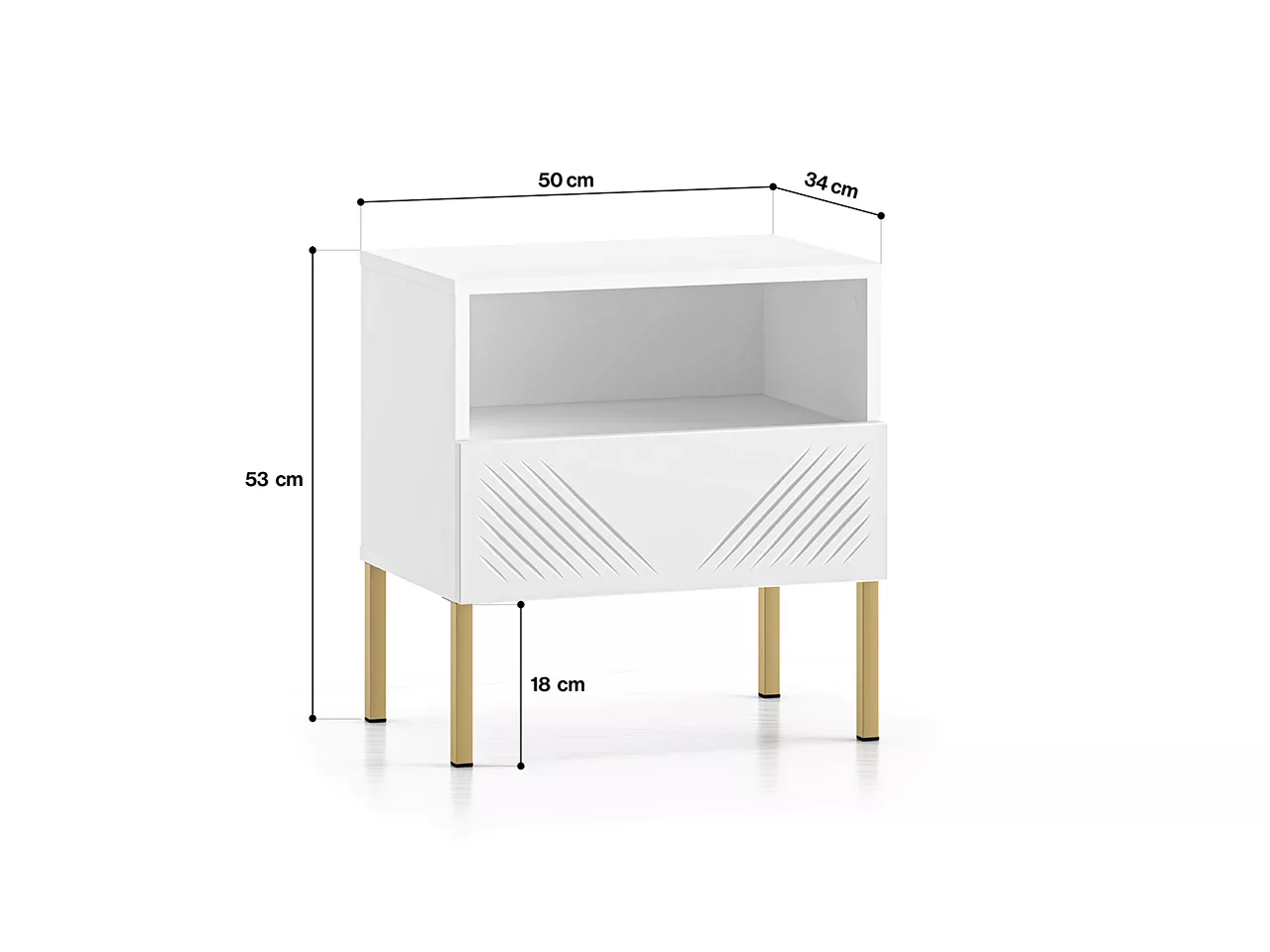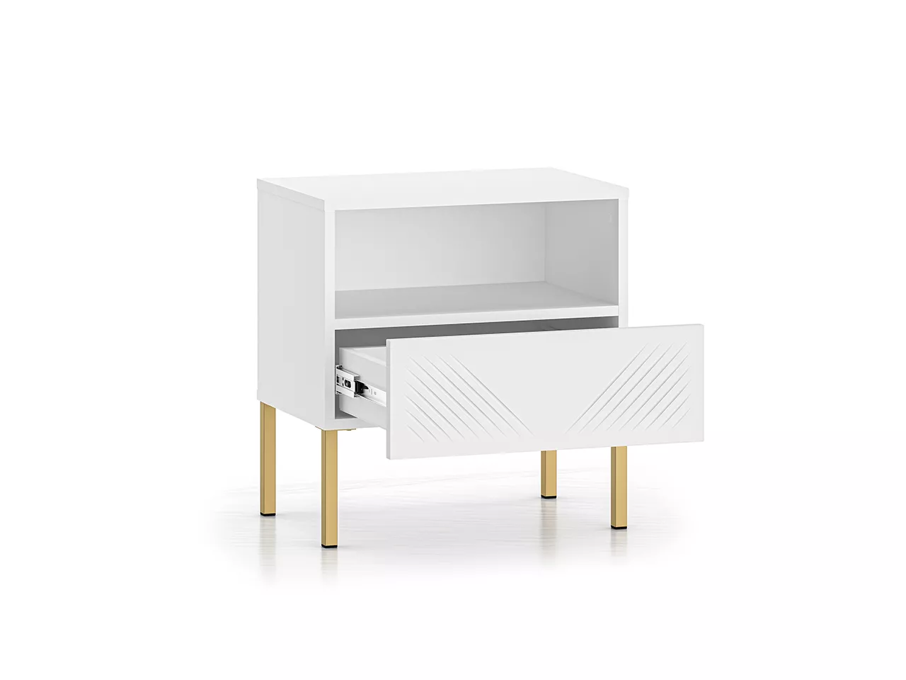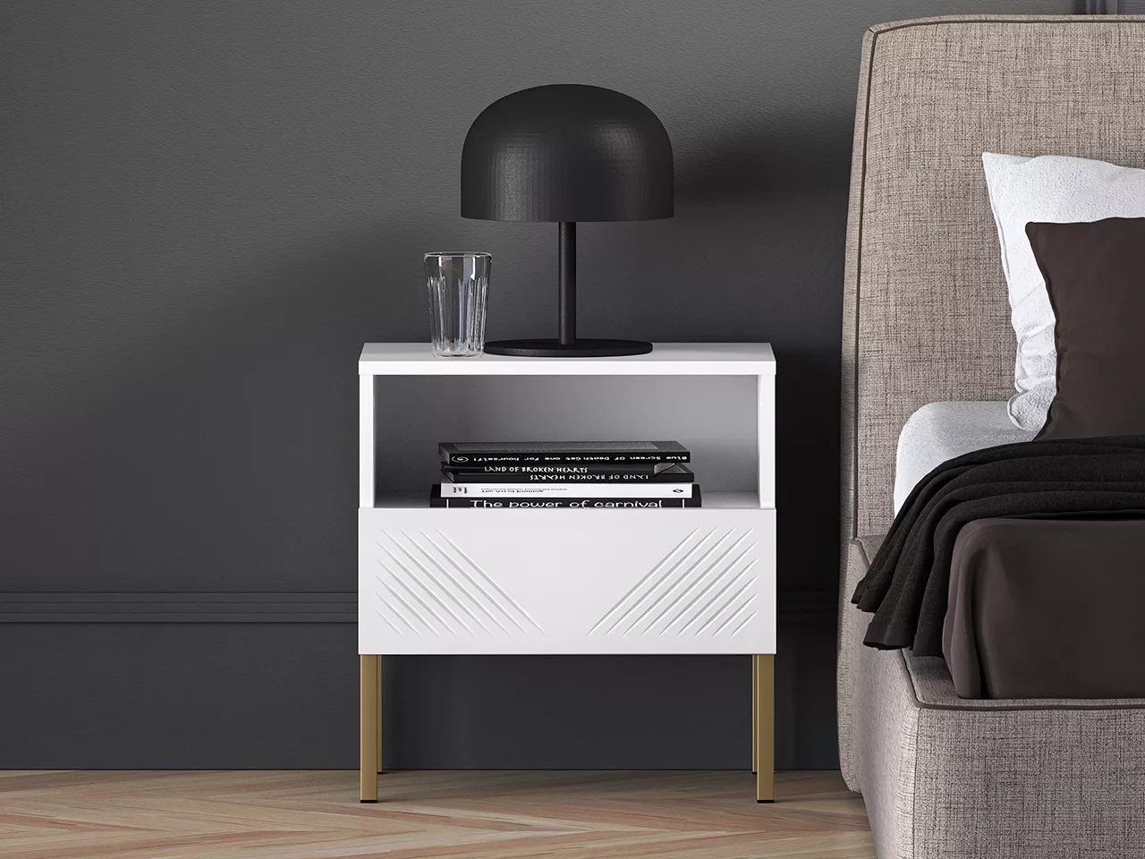 Noční stolek ADELE 2 zaujme především stylovým provedením. Stolek nabízí dostatek úložného prostoru v podobě 1 přihrádky a 1 šuplíku s plnovýsuvem.