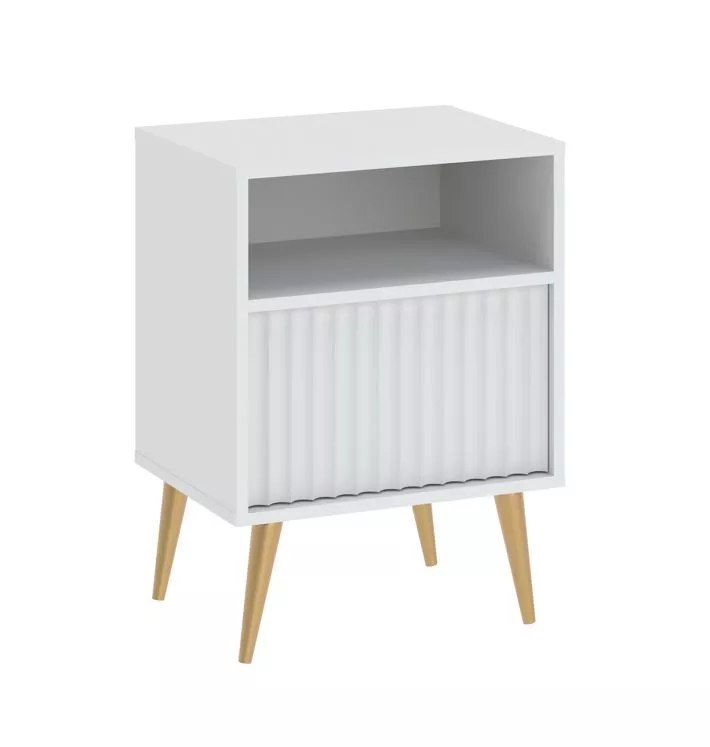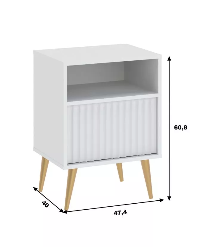 Elegantní a praktický noční stolek JEWETT je nezbytným vybavením každé ložnice. Nabízí dostatek místa pro uložení potřebných věcí, jako je nabíječka na telefon, oblíbená kniha, kosmetika nebo léky.