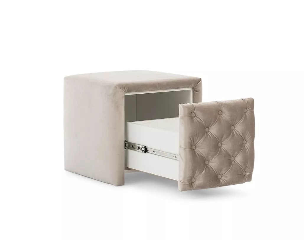 Noční stolek WANEKA se hodí k postelím ze stejnojmenné kolekce. Nechybí ani praktický šuplík.