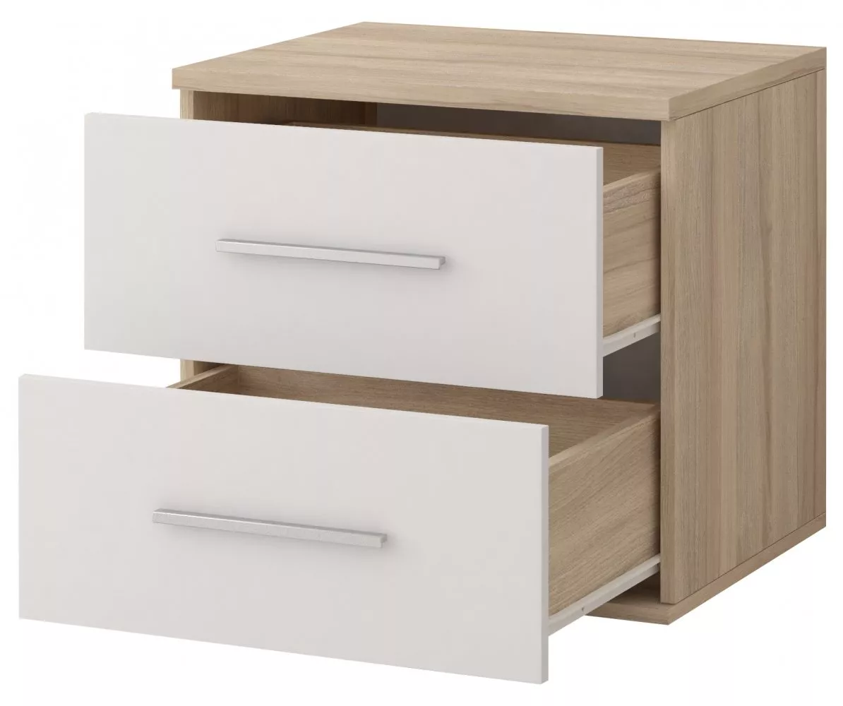 Praktický noční stolek Oleg je univerzální pomocník jak do ložnice, tak dětských či studentských pokojů. K dispozici má dvě zásuvky. Díky svému LTD dřevěnému materiálu nevyžaduje náročnou údržbu.