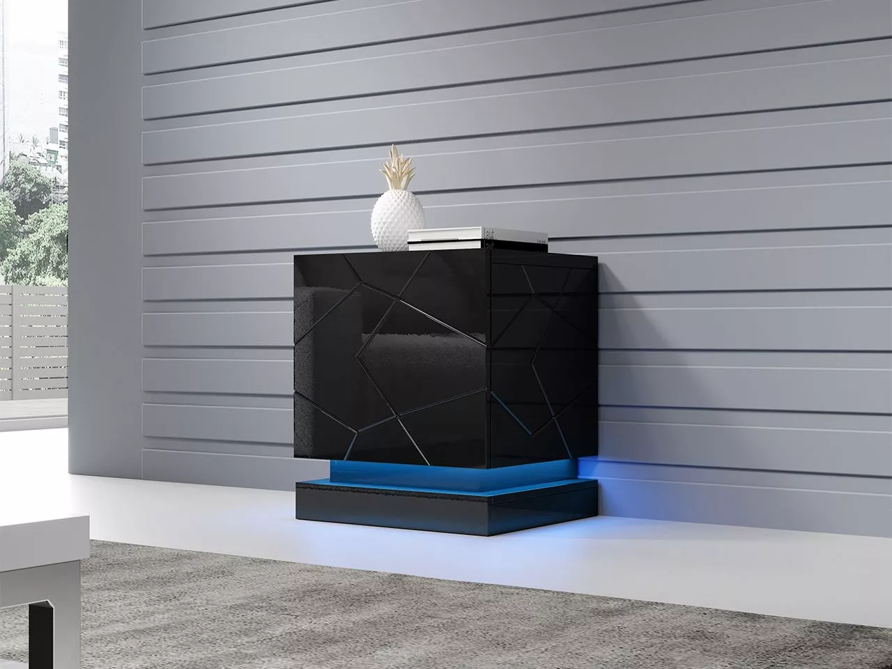 Set 2x noční stolek LIMA je vysoce moderním vybavením ložnice. Jedinečný design nočních stolků umocňují frézovaná dvířka. Stolek je vybaven inovativním RGB LED osvětlením.