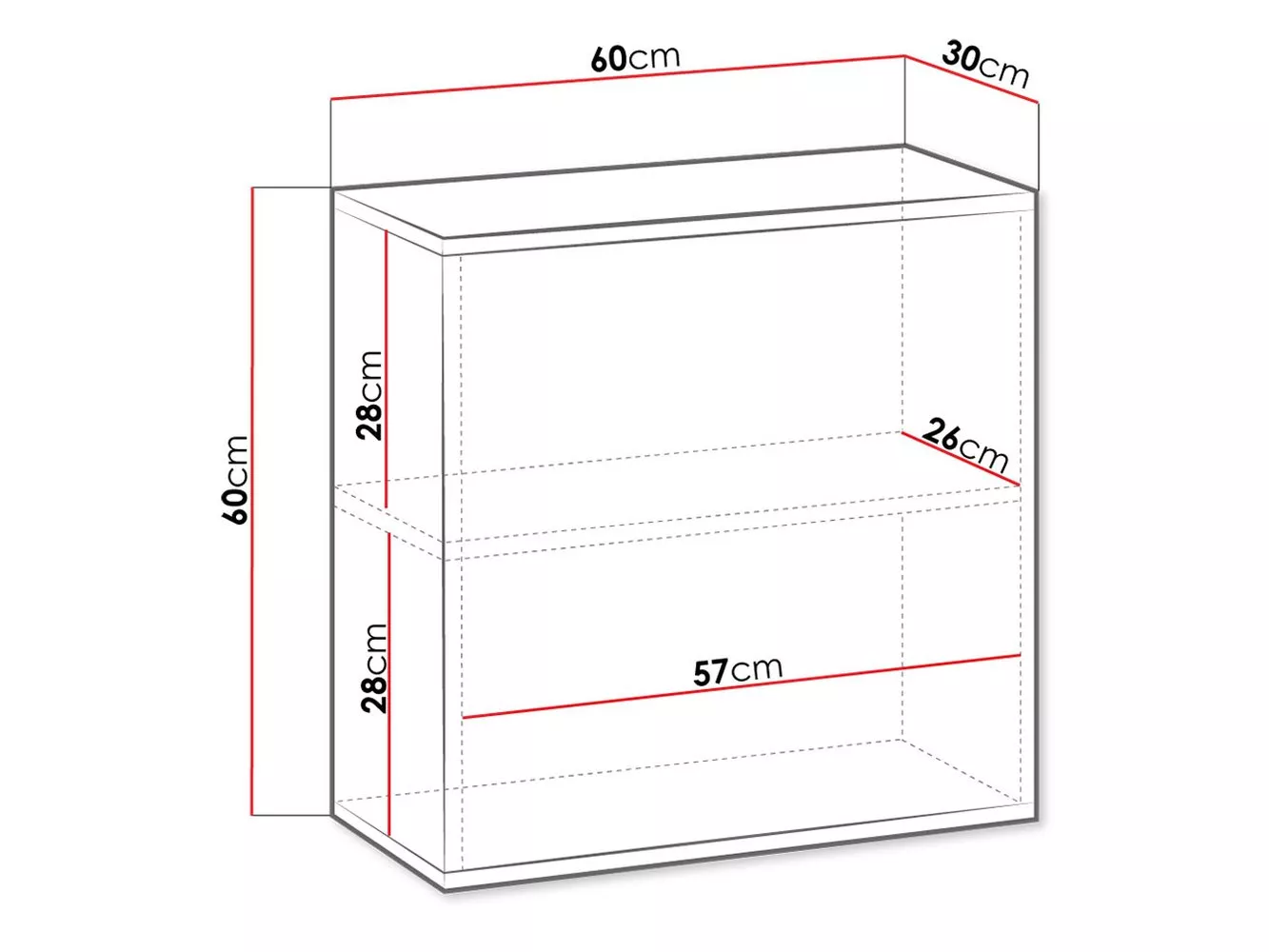 - čtvercová skříňka: 60/60/30 cm