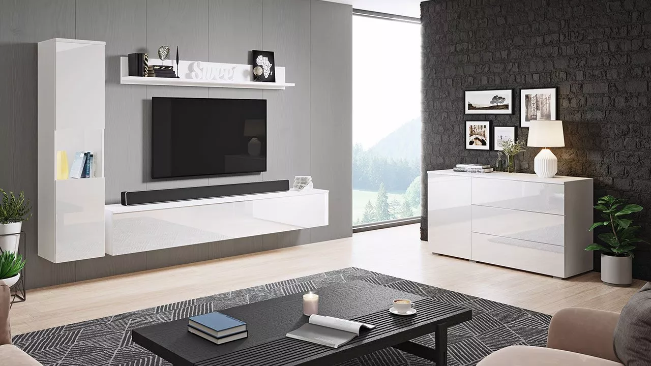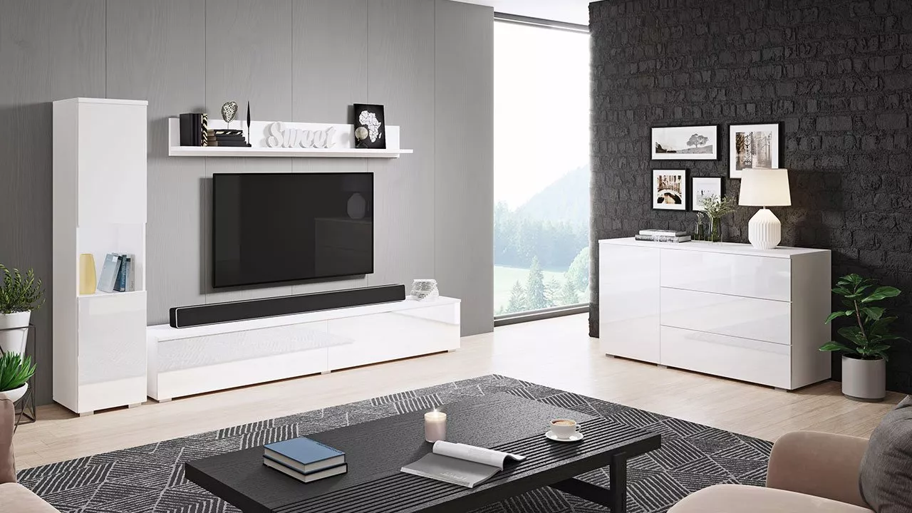Moderní obývací stěna ROSALIO - lesklá bílá / bílá