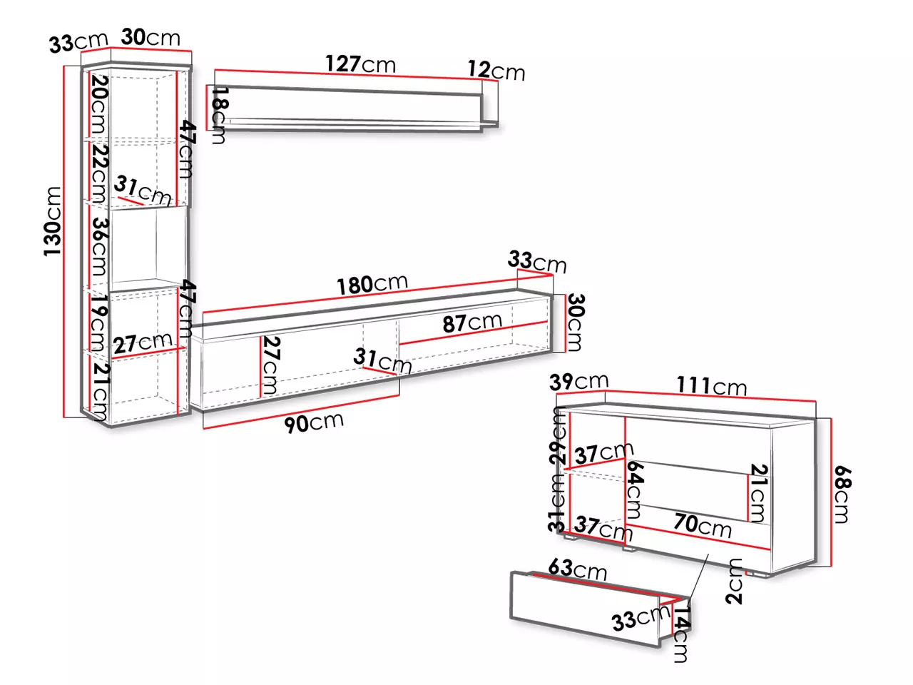 Mimořádně funkční a nadčasový nábytek do obývacího pokoje ROSARIO se skládá z prostorného TV stolku, kombinované komody, vysoké vitríny a praktické závěsné poličky. ROSARIO nabízí 2 způsoby montáže – stojící / závěsná. Výhodou závěsného nábytku je snazší úklid a ušetření prostoru.