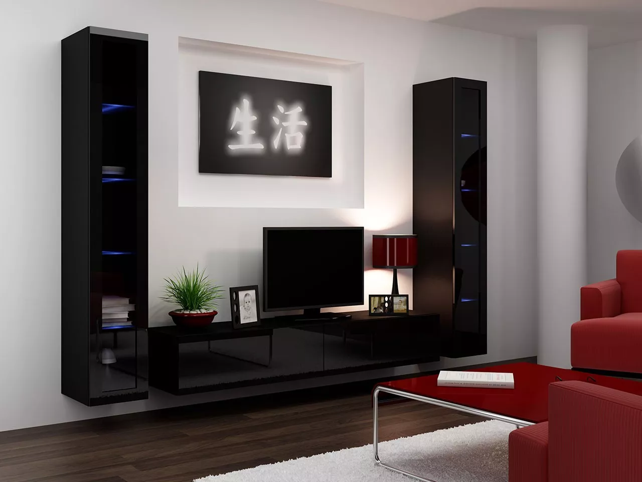 Obývací stěna ASHTON 1 - černá / lesklá černá