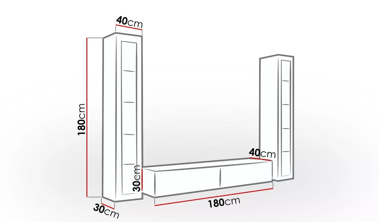 Obývací stěna ASHTON 5 nabízí moderní vzhled a praktické uspořádání skříněk. Stěna se skládá z TV skříňky, která nabízí dostatek úložného prostoru pro televizní příslušenství. Závěsné vitríny slouží k vystavení dekorací, suvenýrů nebo knih. Vitríny jsou navíc vybaveny inovativním barevným RGB LED osvětlením. Stěna nemá žádné úchyty, ale je vybavena technologií "PUSH TO OPEN". Tento inovativní systém otevírání spočívá v mírném stlačení předních částí. Dvířka jsou vyrobena z kvalitní MDF desky v lesklé barvě.